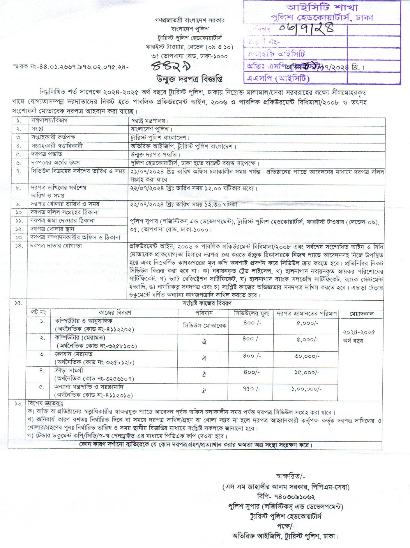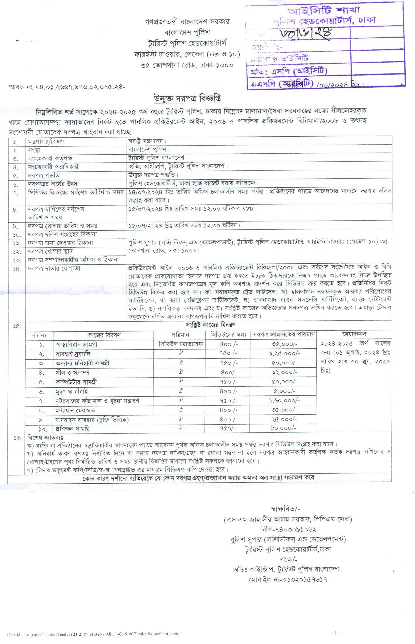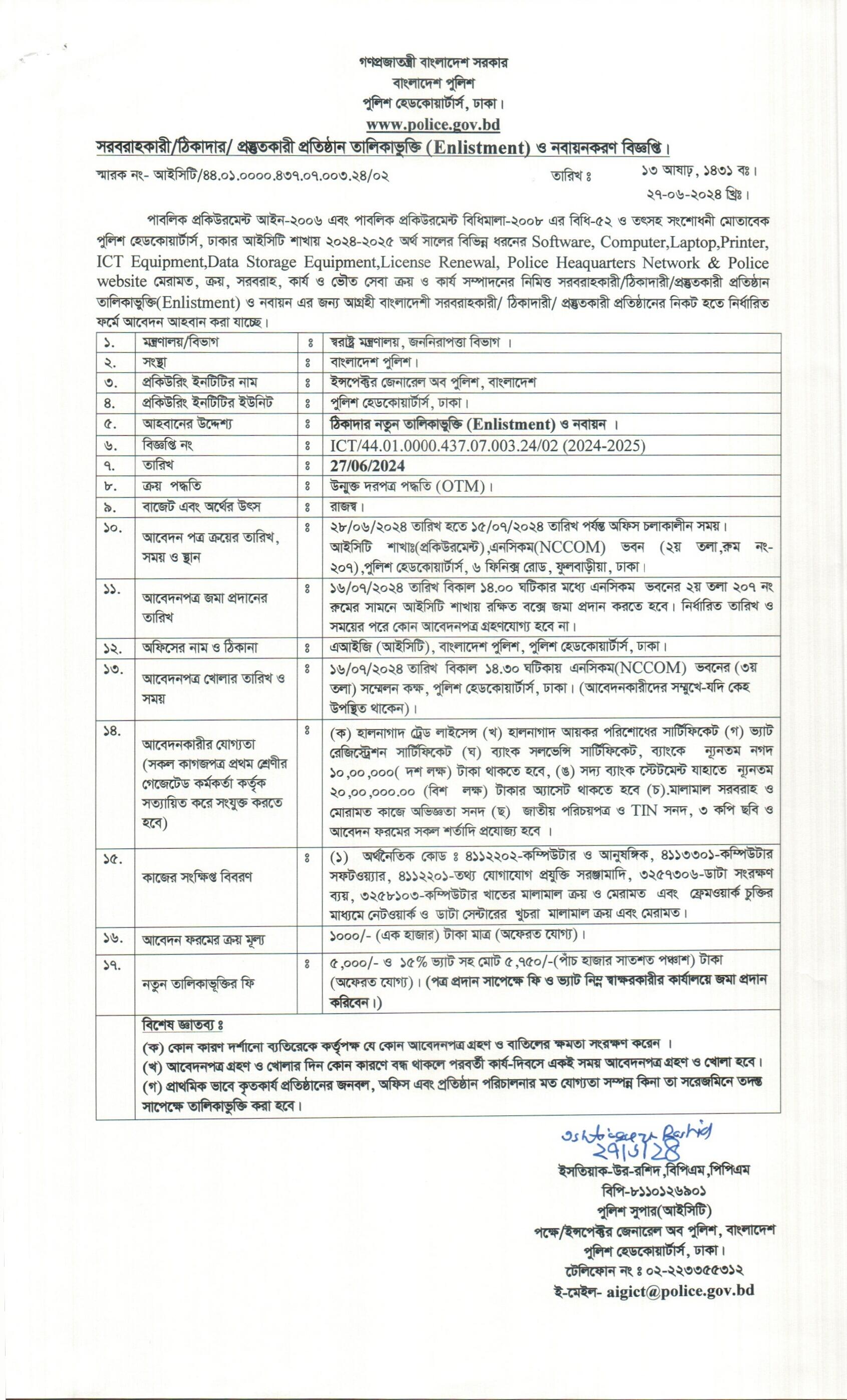 | 480 | ঠিকাদার তালিকাভুক্তি(ICT, PHQ, Dhaka.) | 16-07-2024 | 16-07-2024 | View | Download |