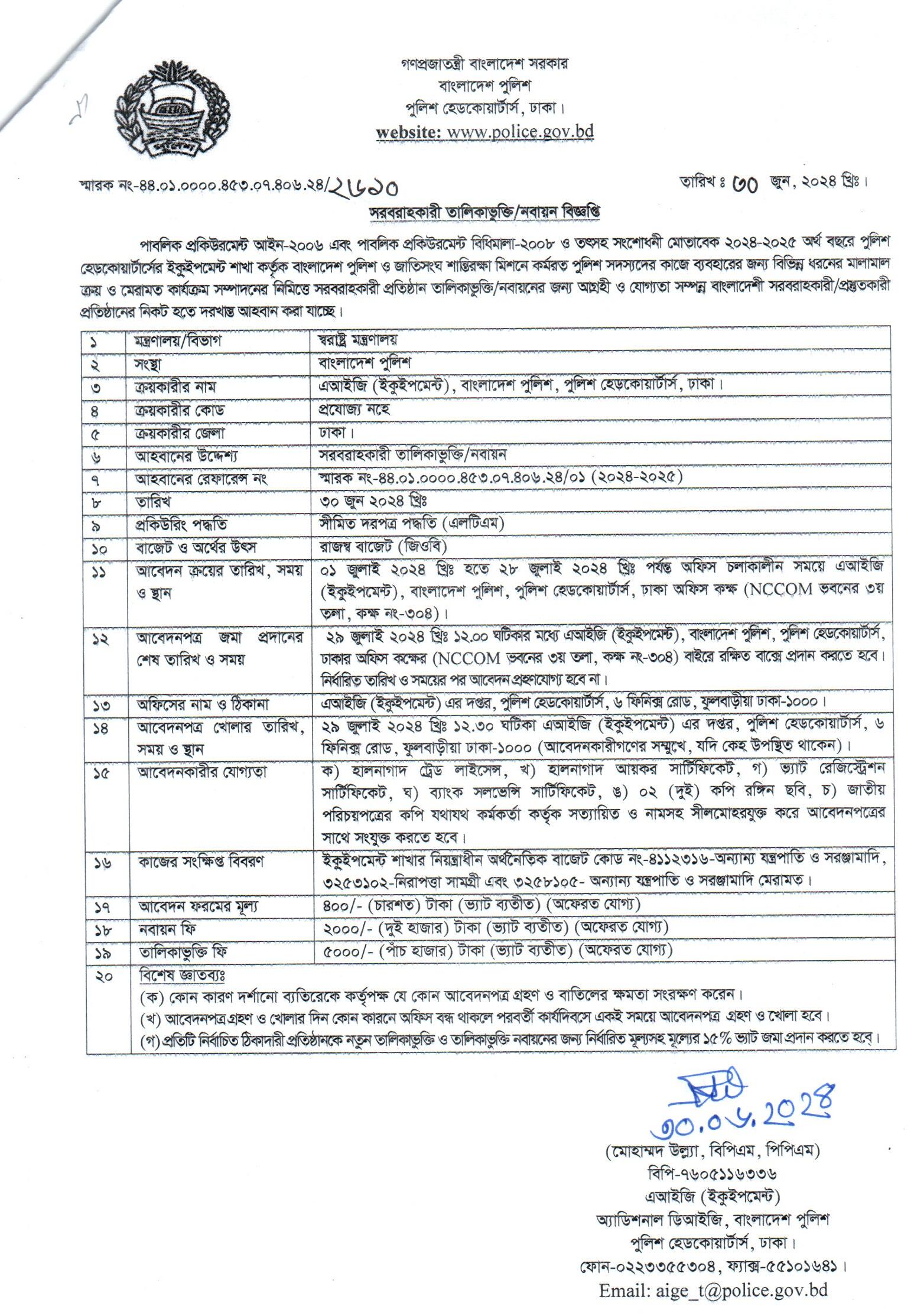 | 479 | ঠিকাদার তালিকাভুক্তি(Equipment, PHQ, Dhaka.) | 29-07-2024 | 29-07-2024 | View | Download |