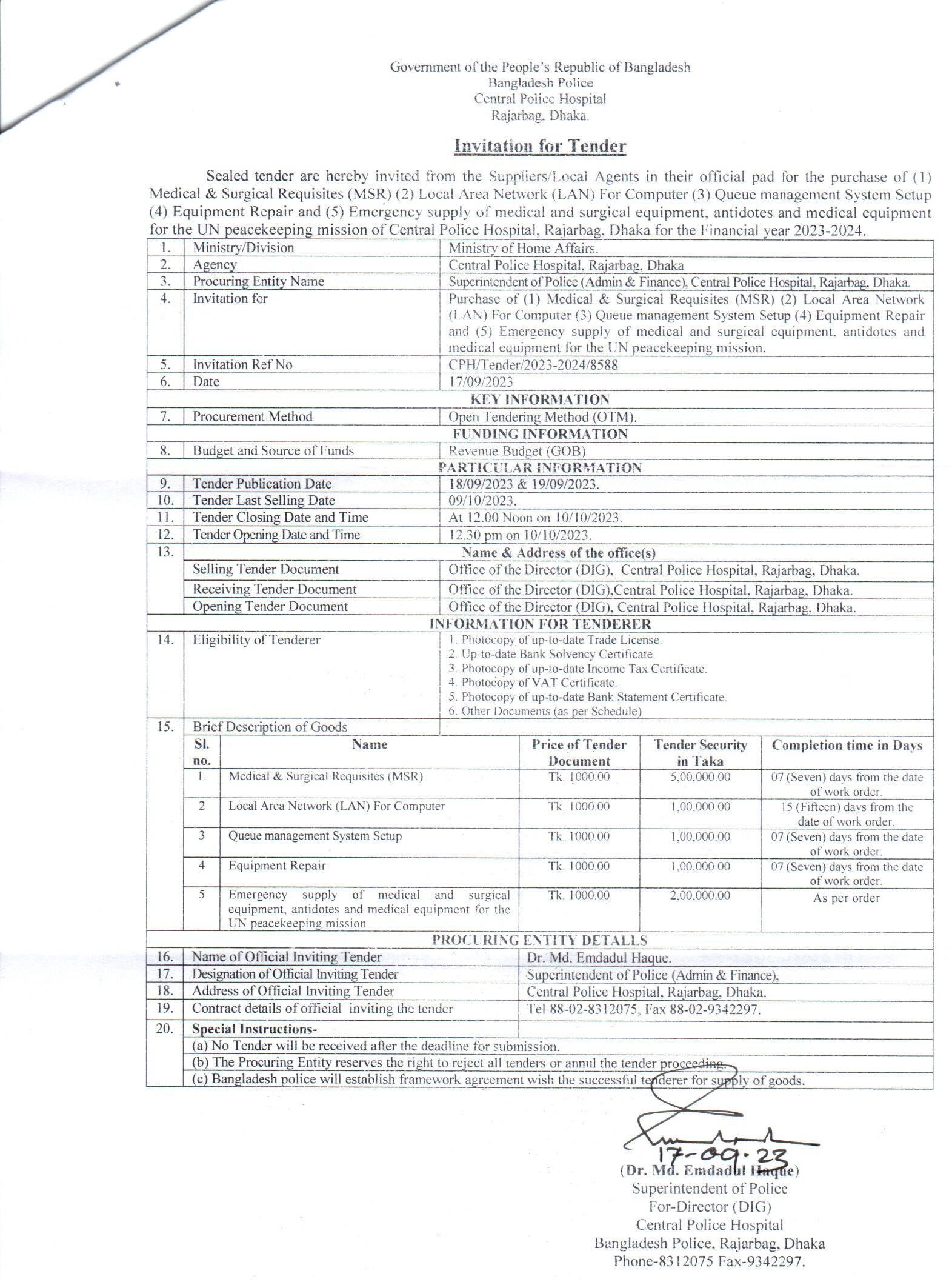 | 523 | Miscellaneous Goods of Departmental Store (DMP, Dhaka) | 03-07-2024 | 03-07-2024 | View | Download |