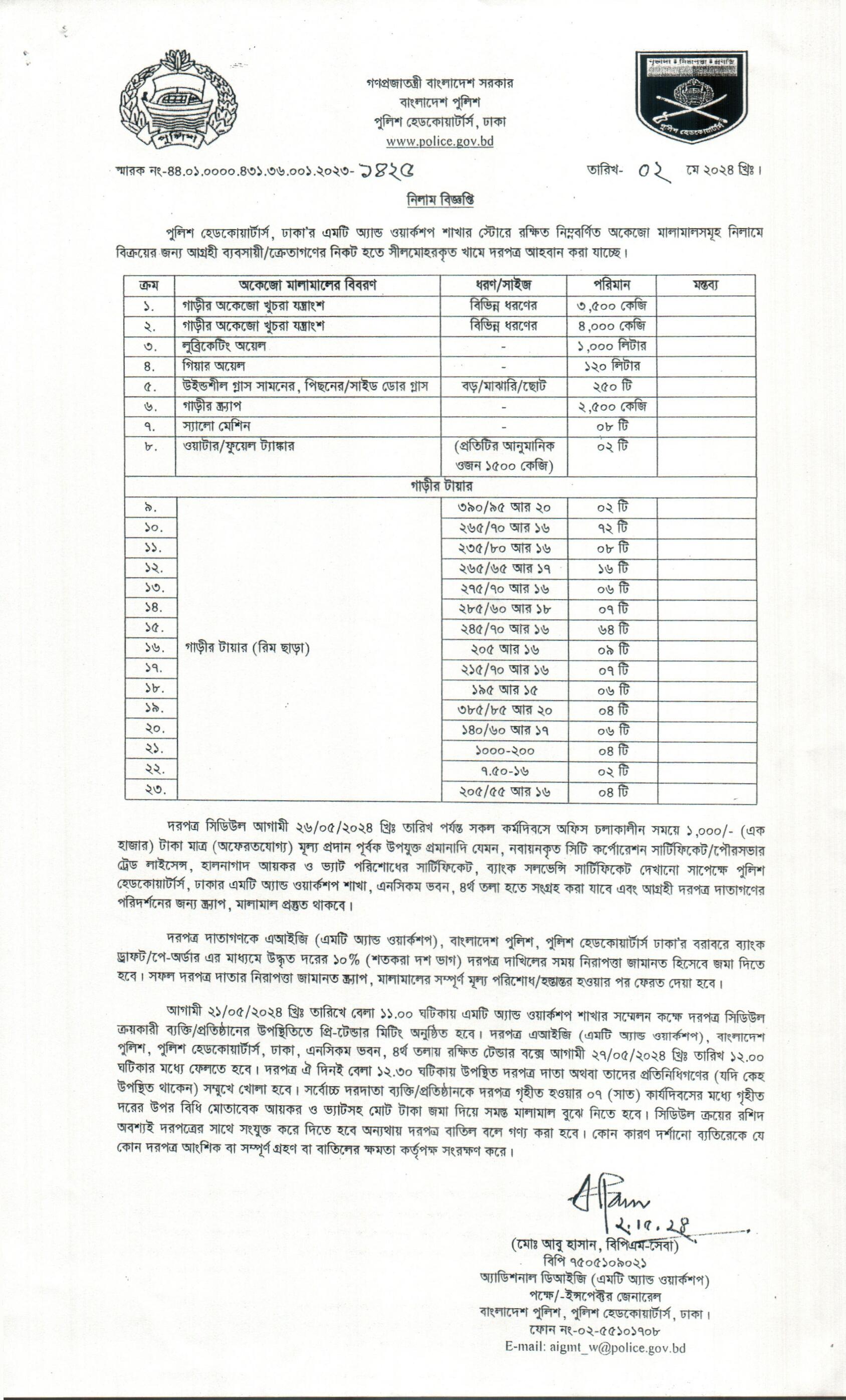 | 570 | নিলাম দরপত্র বিজ্ঞপ্তি (PHQ, Dhaka) | 27-05-2024 | 27-05-2024 | View | Download |