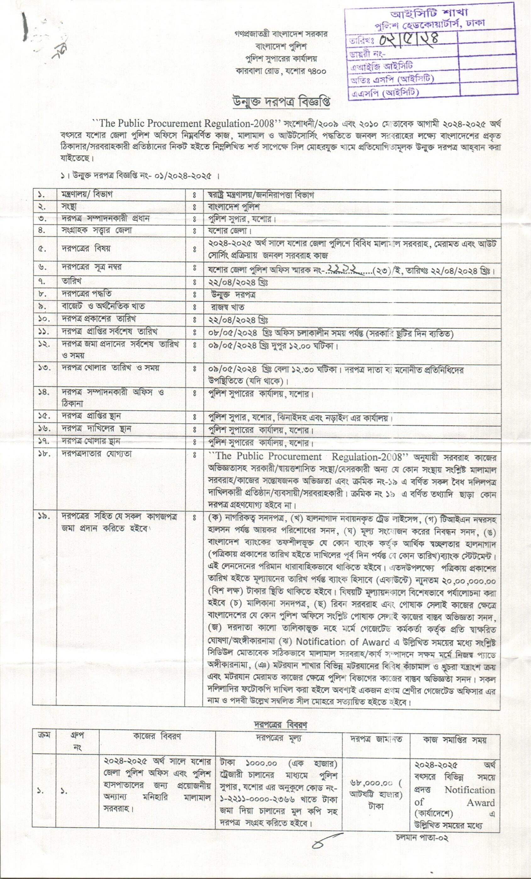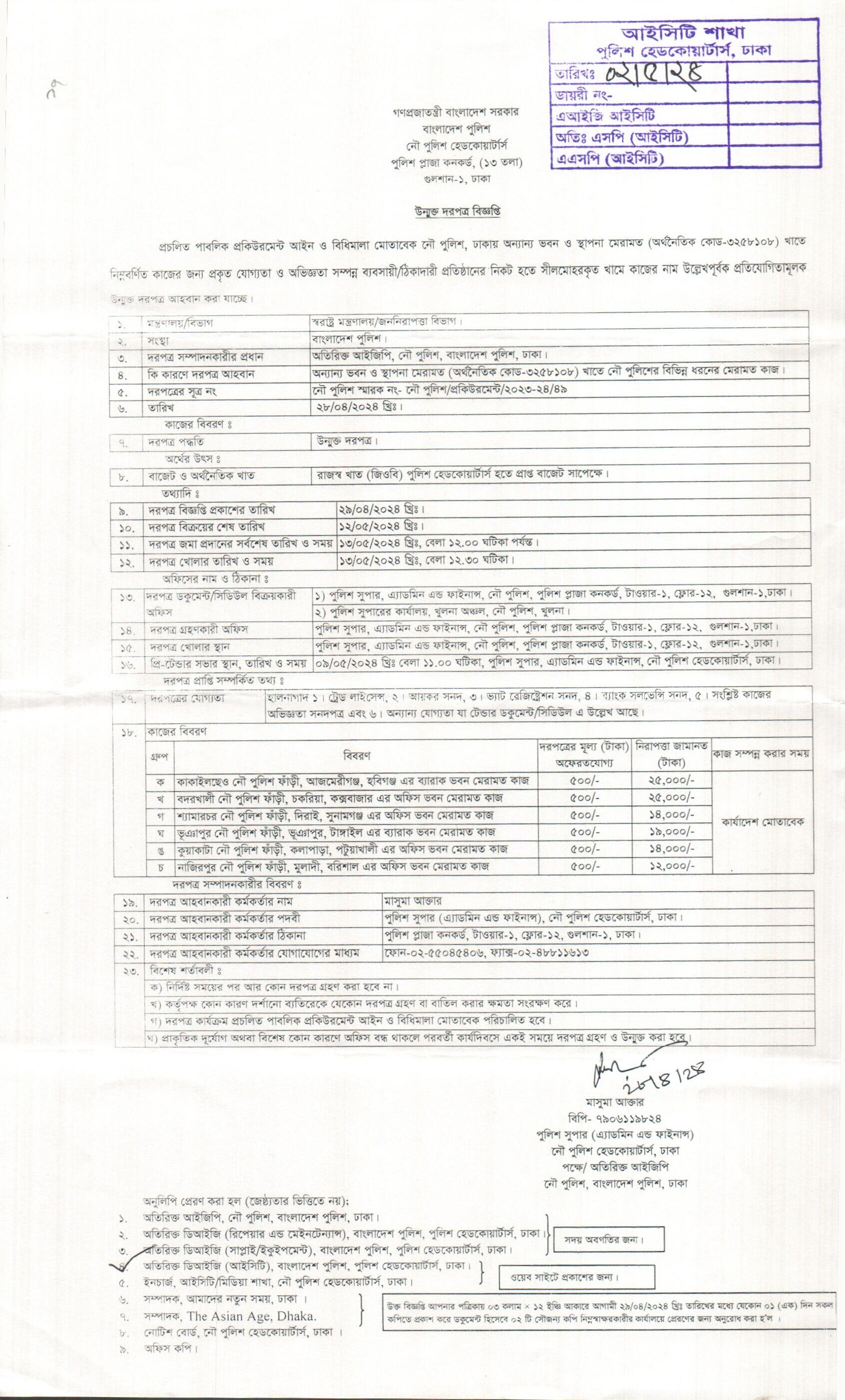| 580 | Upgrdation & Maintenance of (CDMS) With Support.( ICT, PHQ, Dhaka) | 16-05-2024 | 16-05-2024 | View | Download |