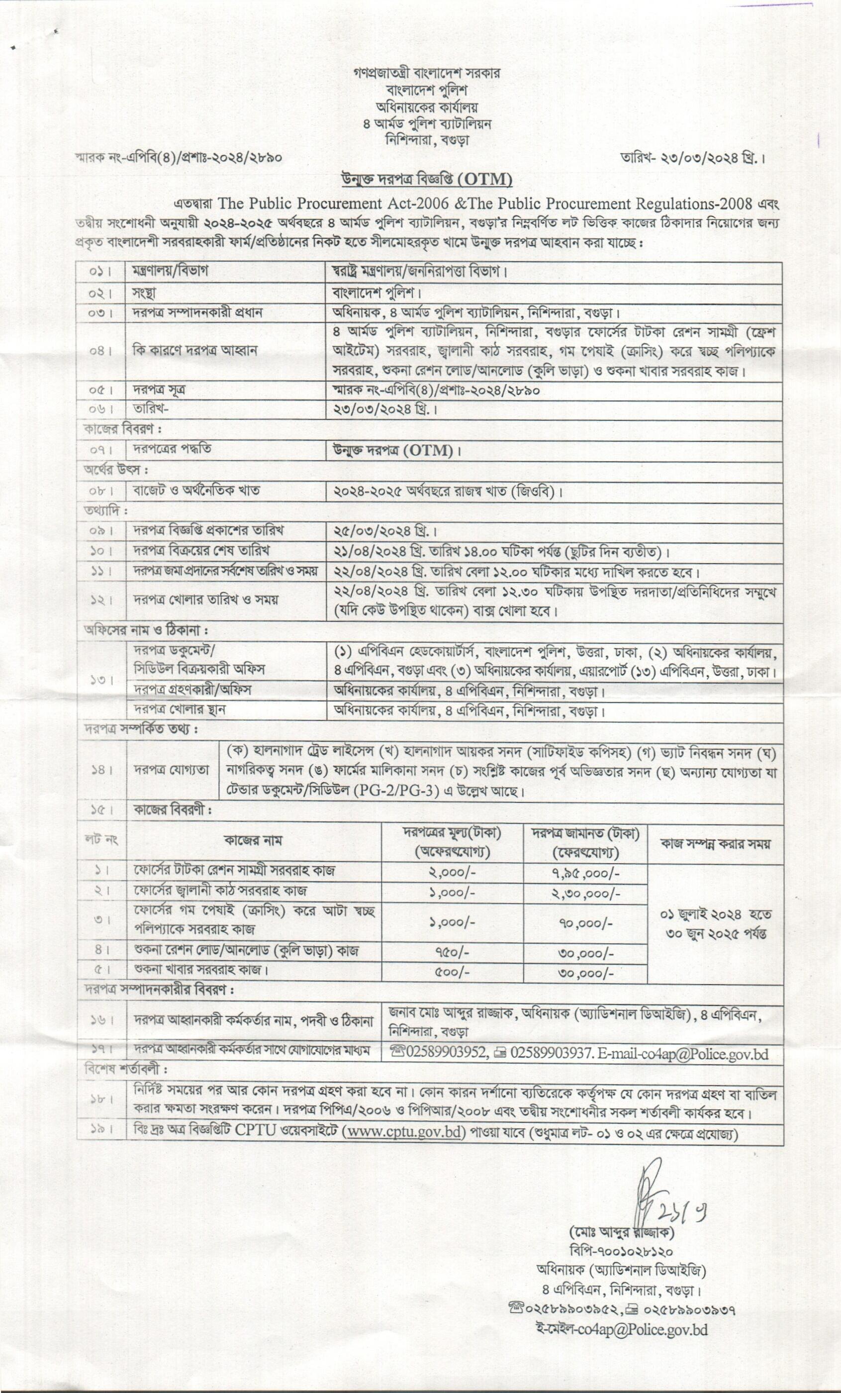 | 607 | রেশন সামগ্রী সরবরাহ ( APBn-5, Dhaka,) | 16-04-2024 | 16-04-2024 | View | Download |