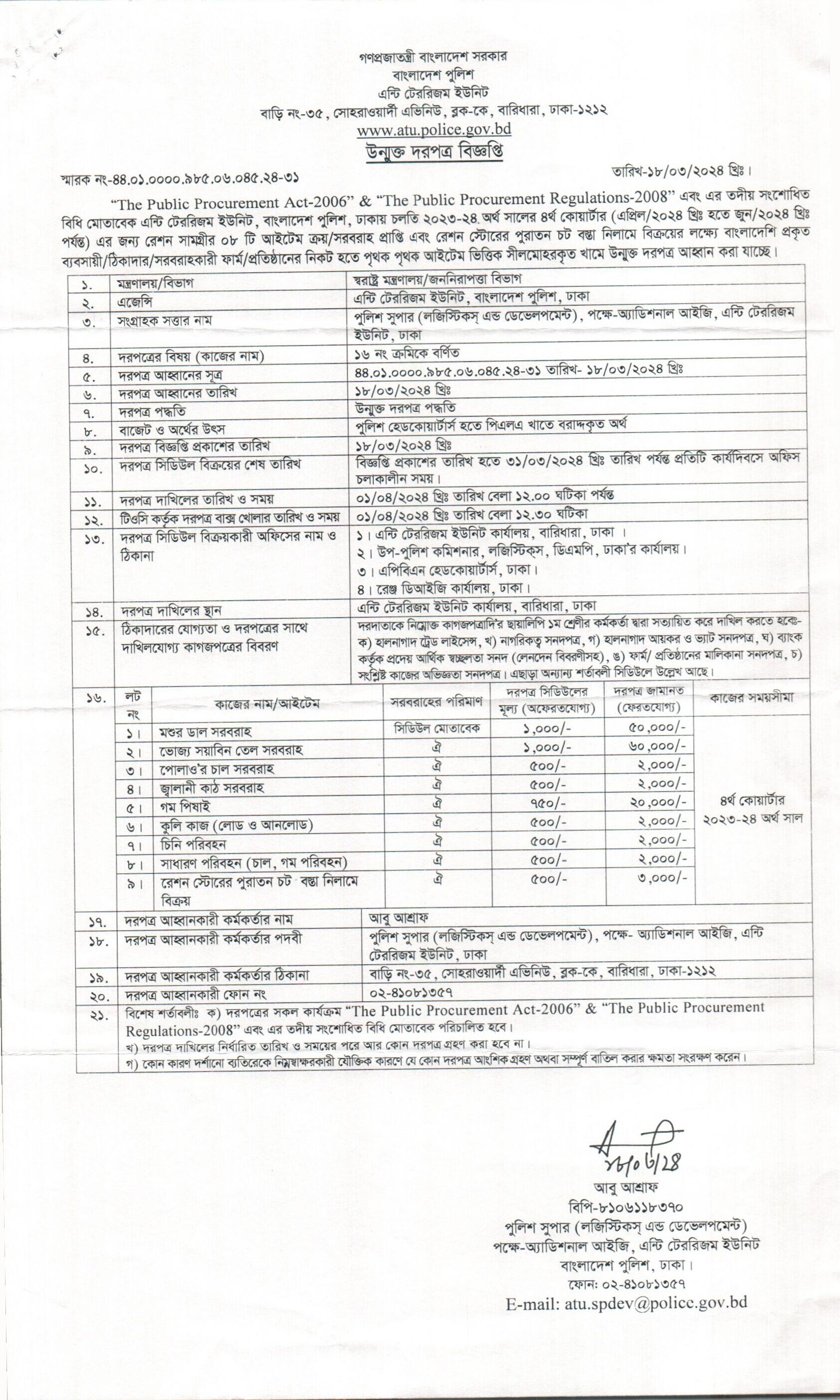 | 604 | রেশন সামগ্রী সরবরাহ ( ATU, Dhaka) | 01-04-2024 | 01-04-2024 | View | Download |
