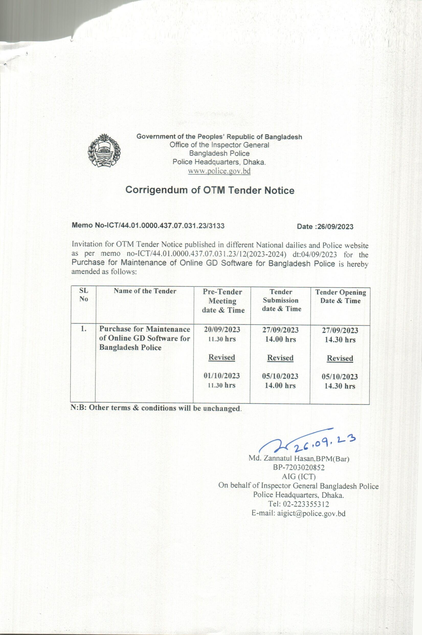 | 751 | Corrigendum of OTM Tender Notice (ICT, PHQ.) | 05-10-2023 | 05-10-2023 | View | Download |