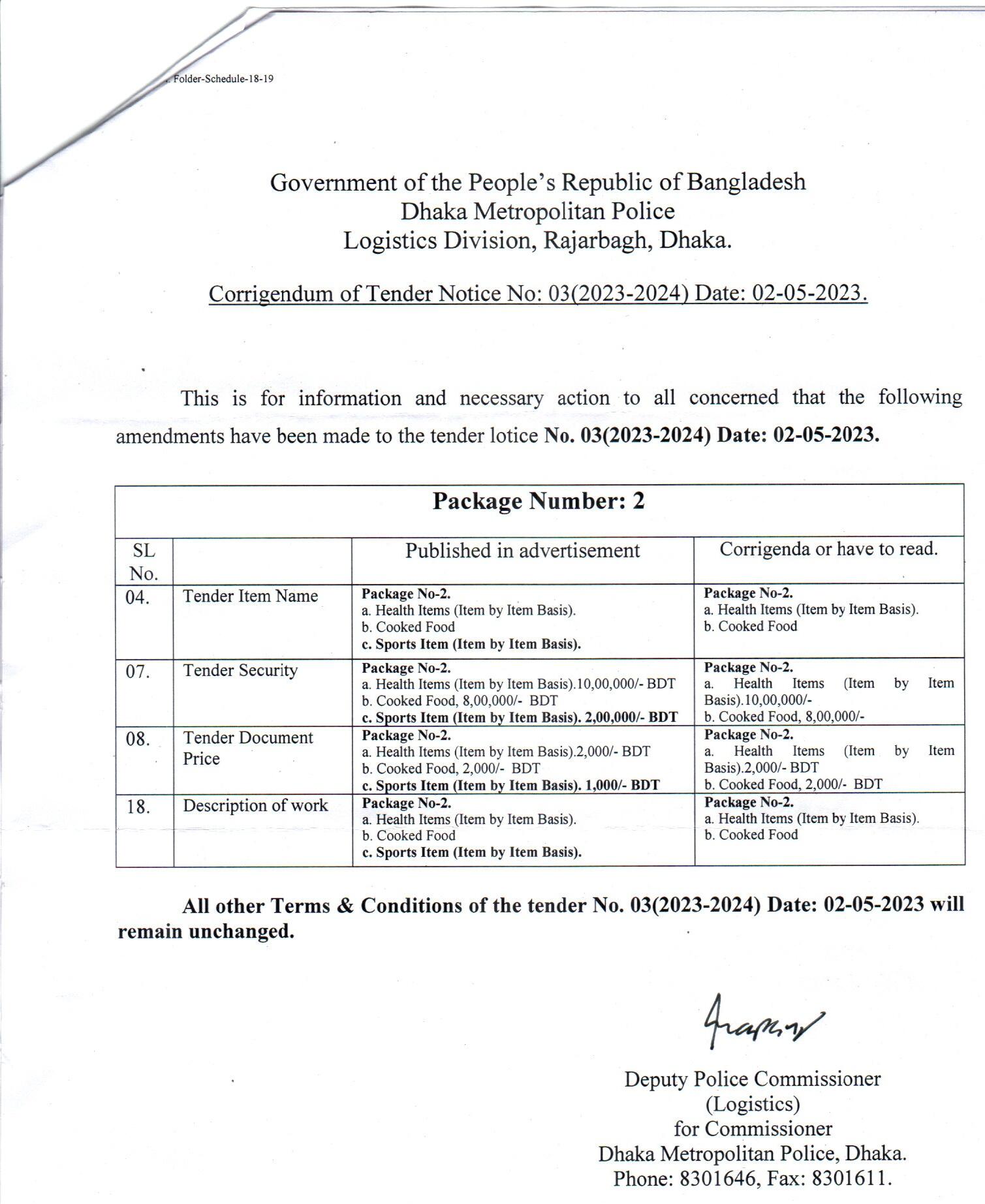 | 902 | Corrigendum of Tender Notice (DMP, Dhaka.) | 05-06-2023 | 05-06-2023 | View | Download |