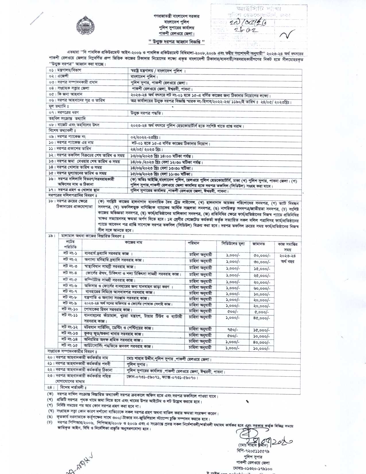 | 910 | মেরামত কাজ, (আর আর এফ, খুলনা) | 01-06-2023 | 01-06-2023 | View | Download |