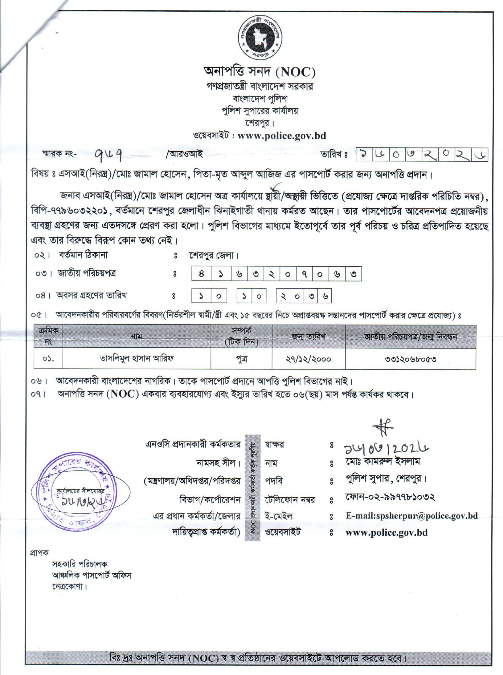 | 27 | মোঃ জামাল হোসেন, SI | Sherpur | 29-03-2026 | View | Download |