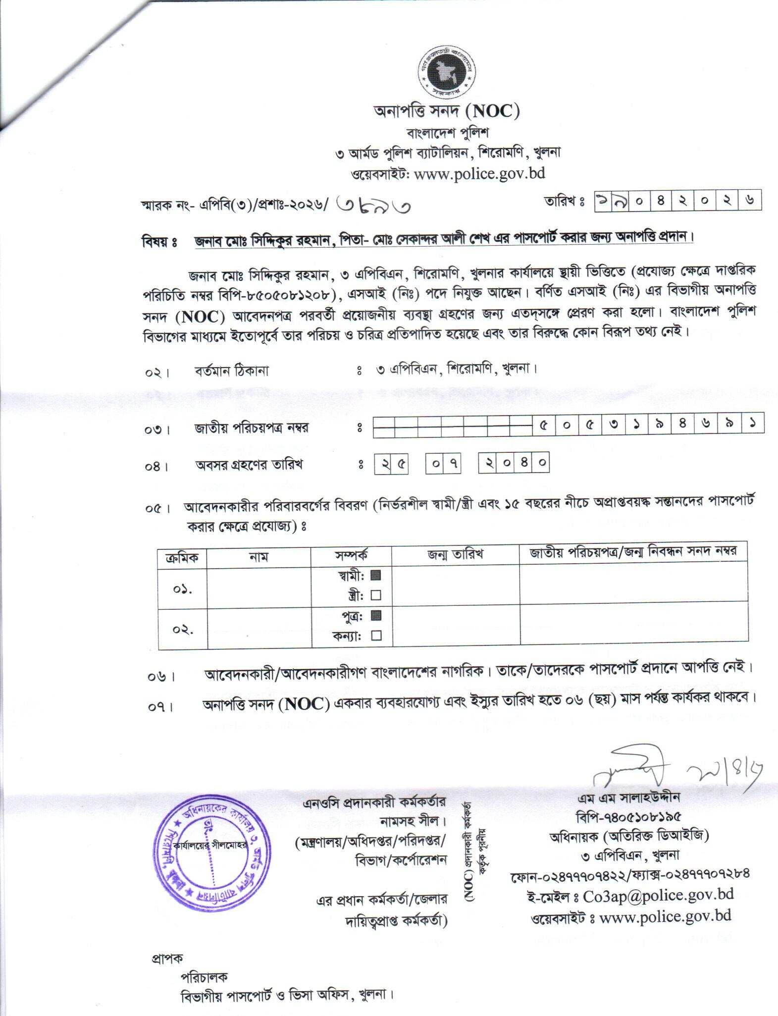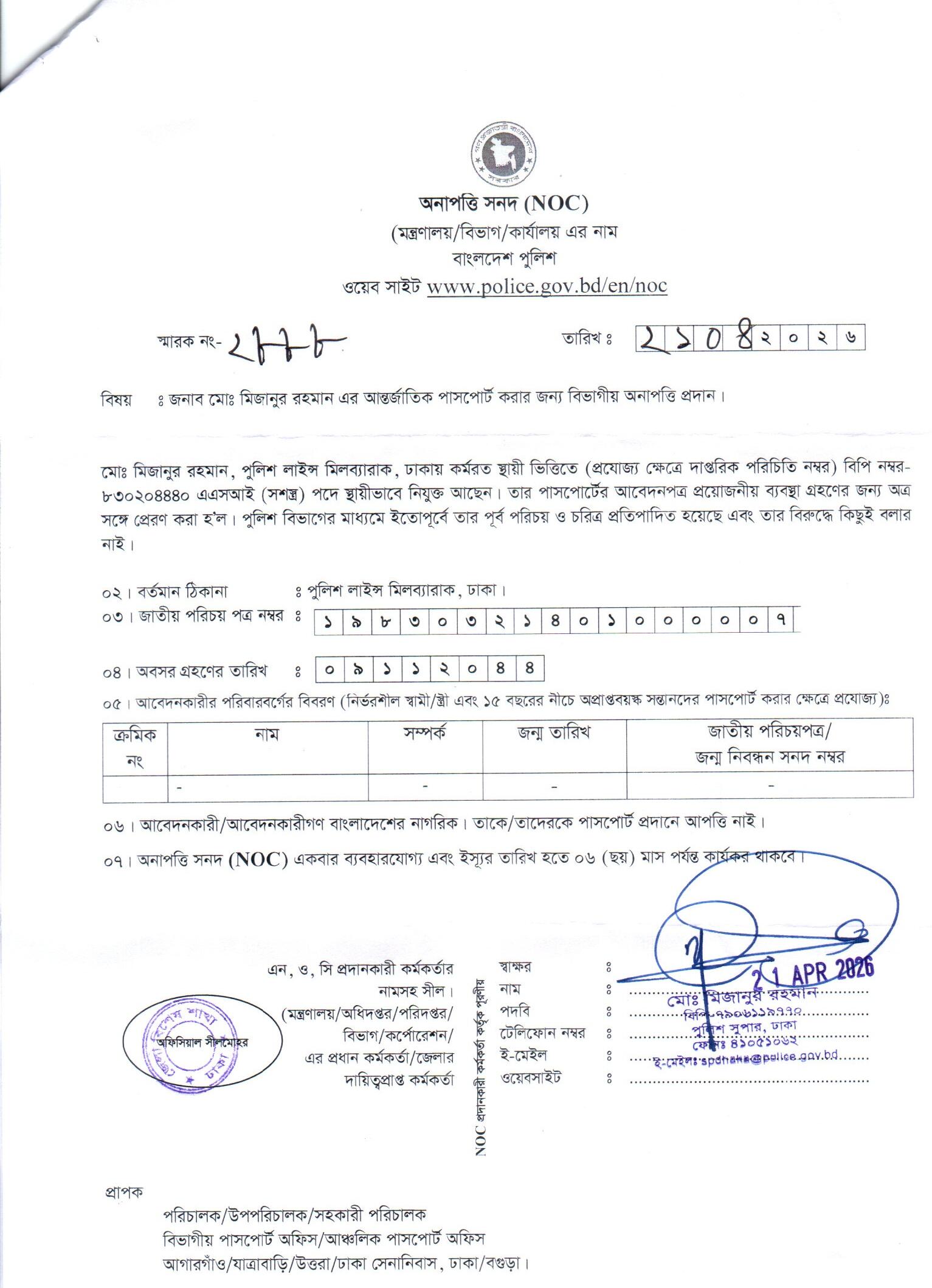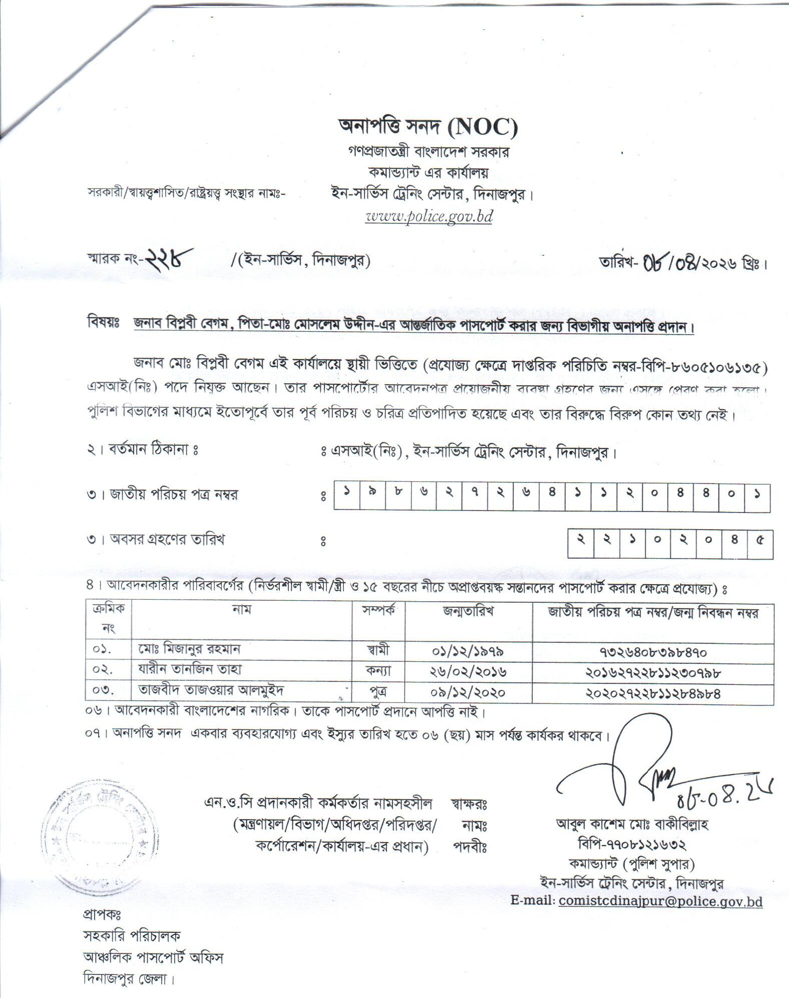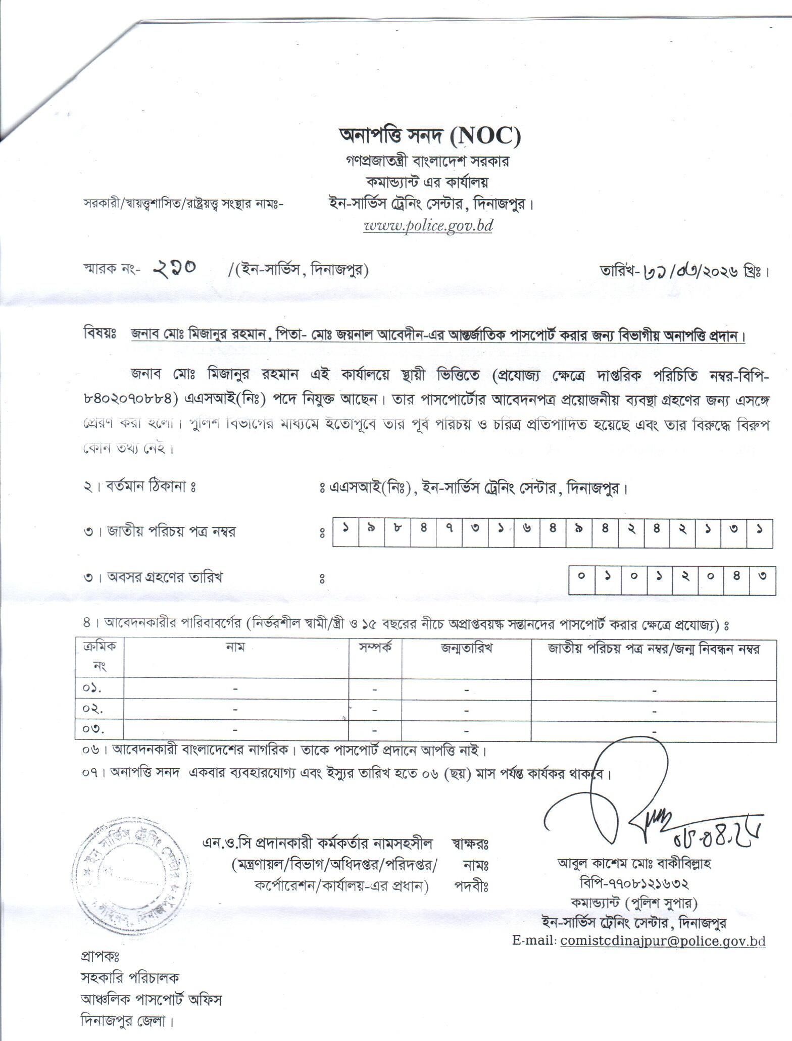 | 8 | মোঃ শফিকুল ইসলাম, SI | Dinajpur | 26-04-2026 | View | Download |