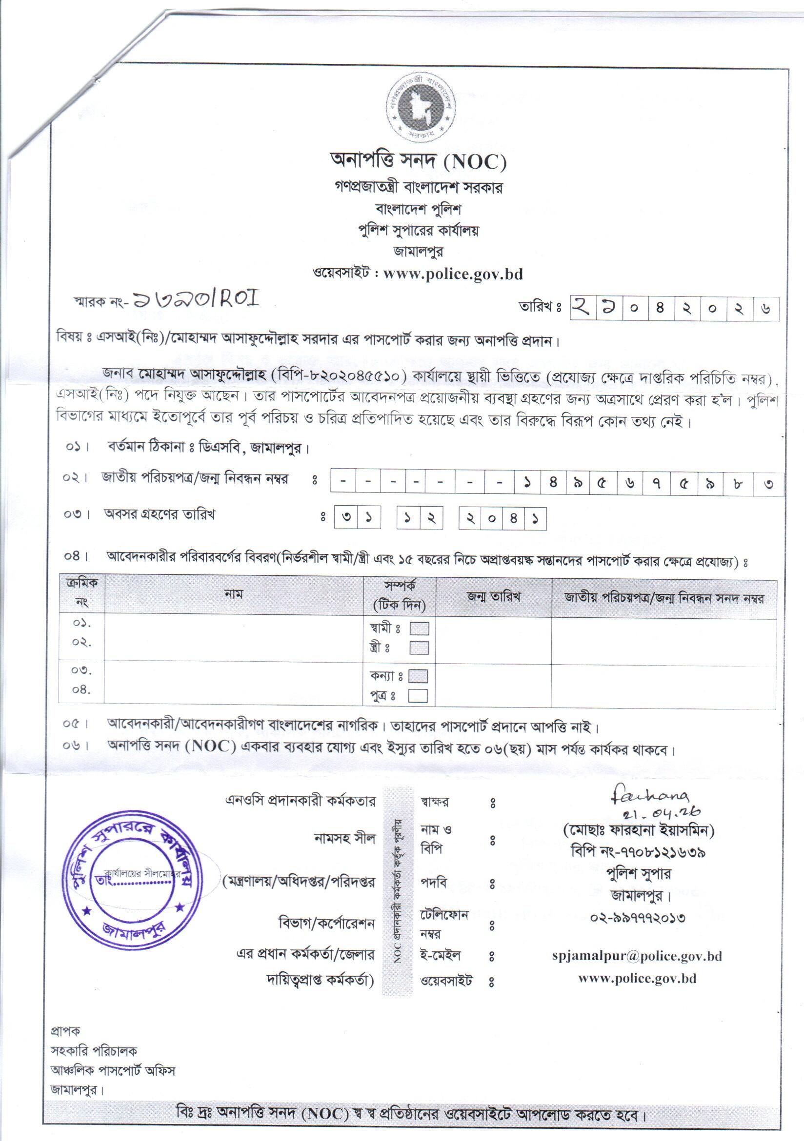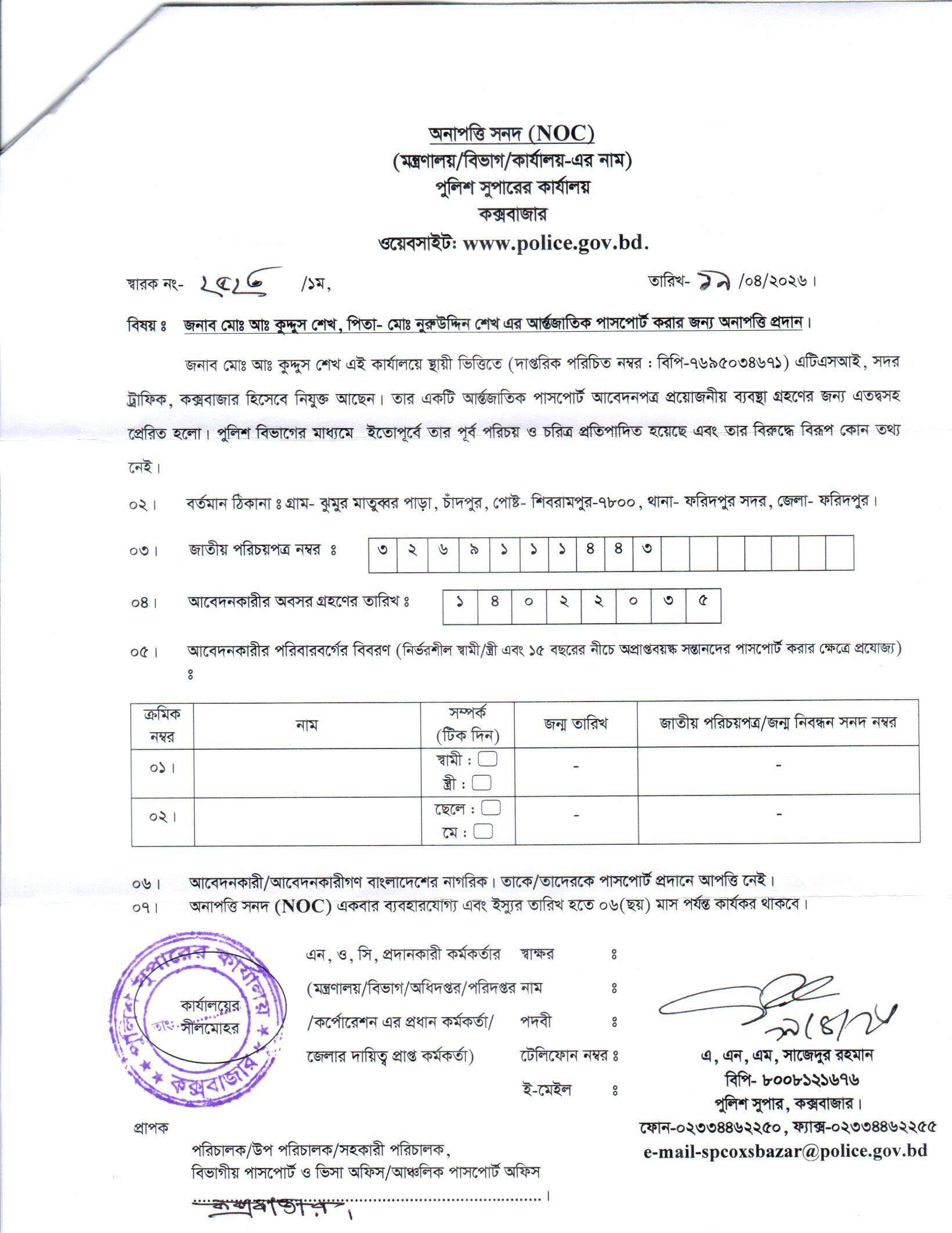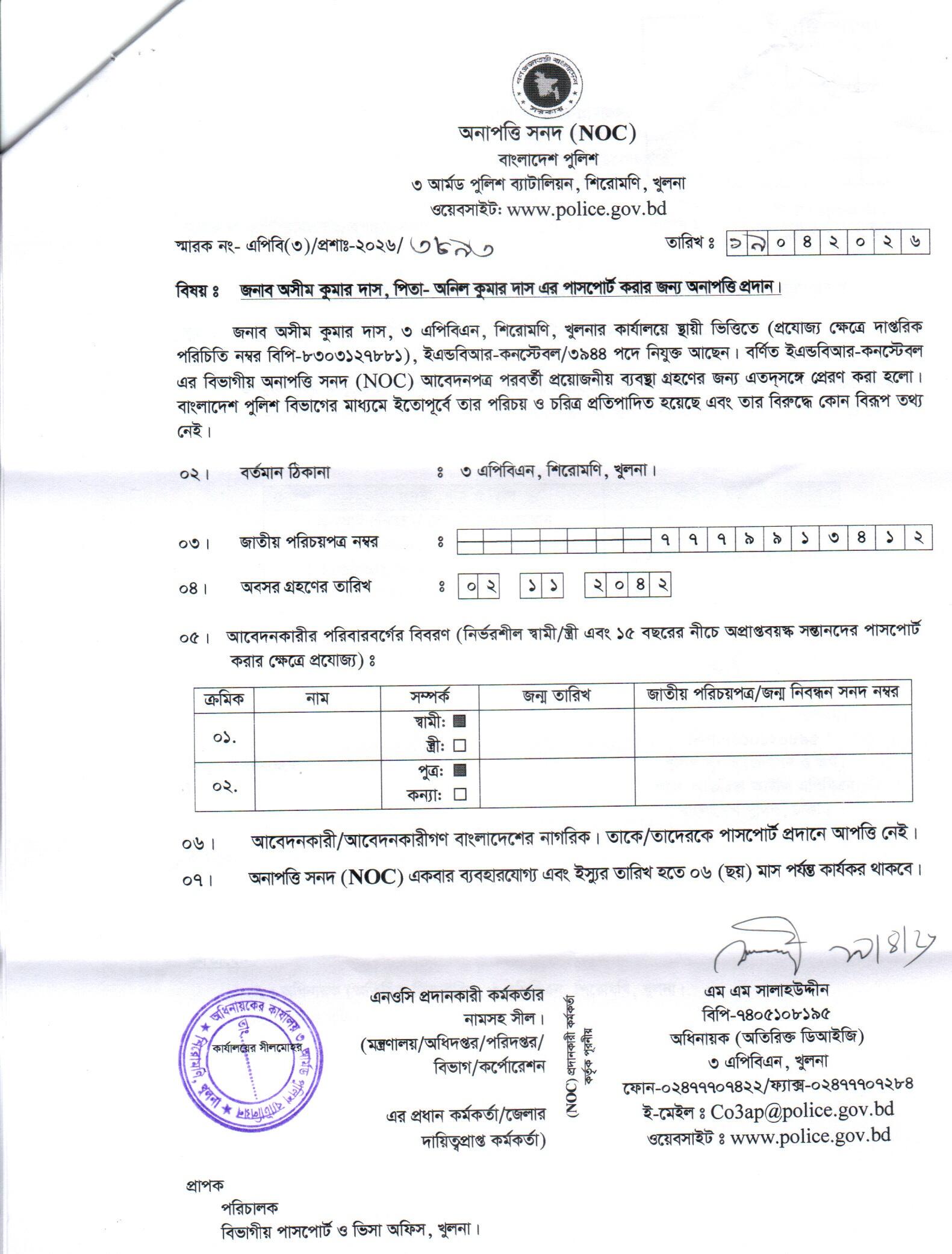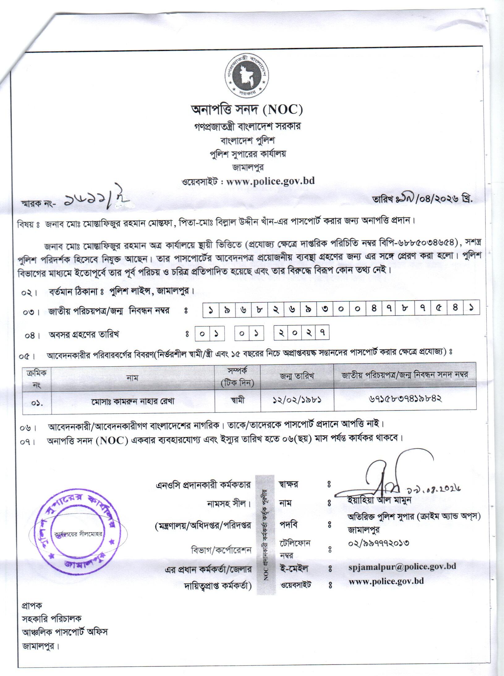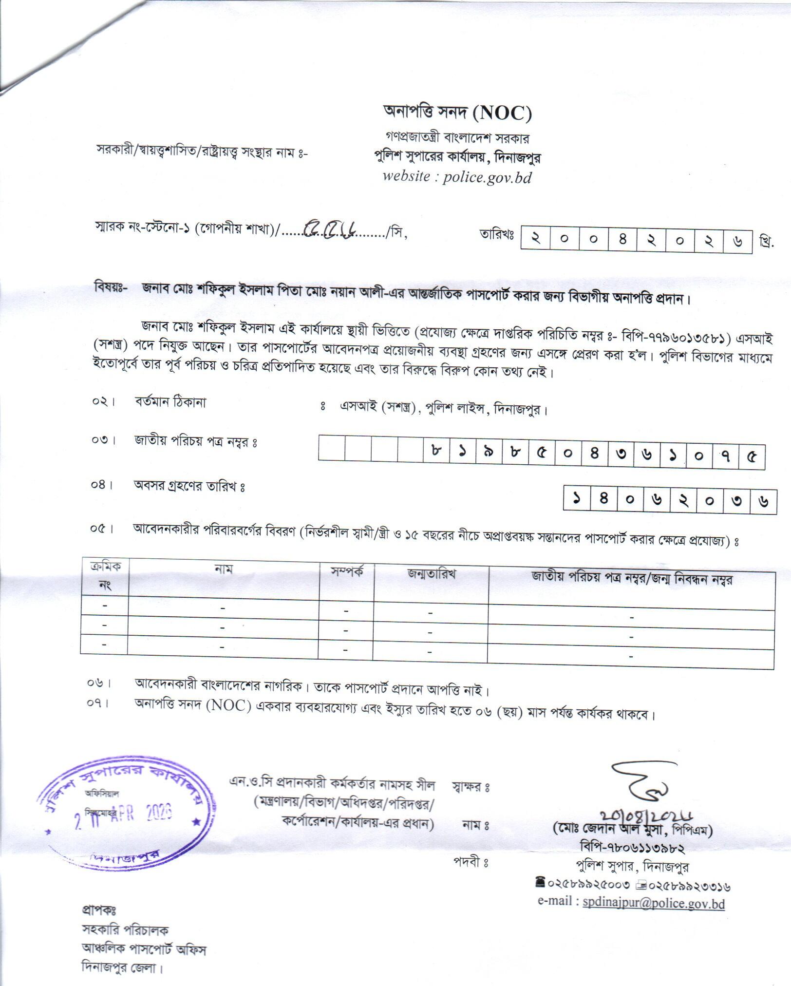 | 8 | মোঃ শফিকুল ইসলাম, SI | Dinajpur | 26-04-2026 | View | Download |