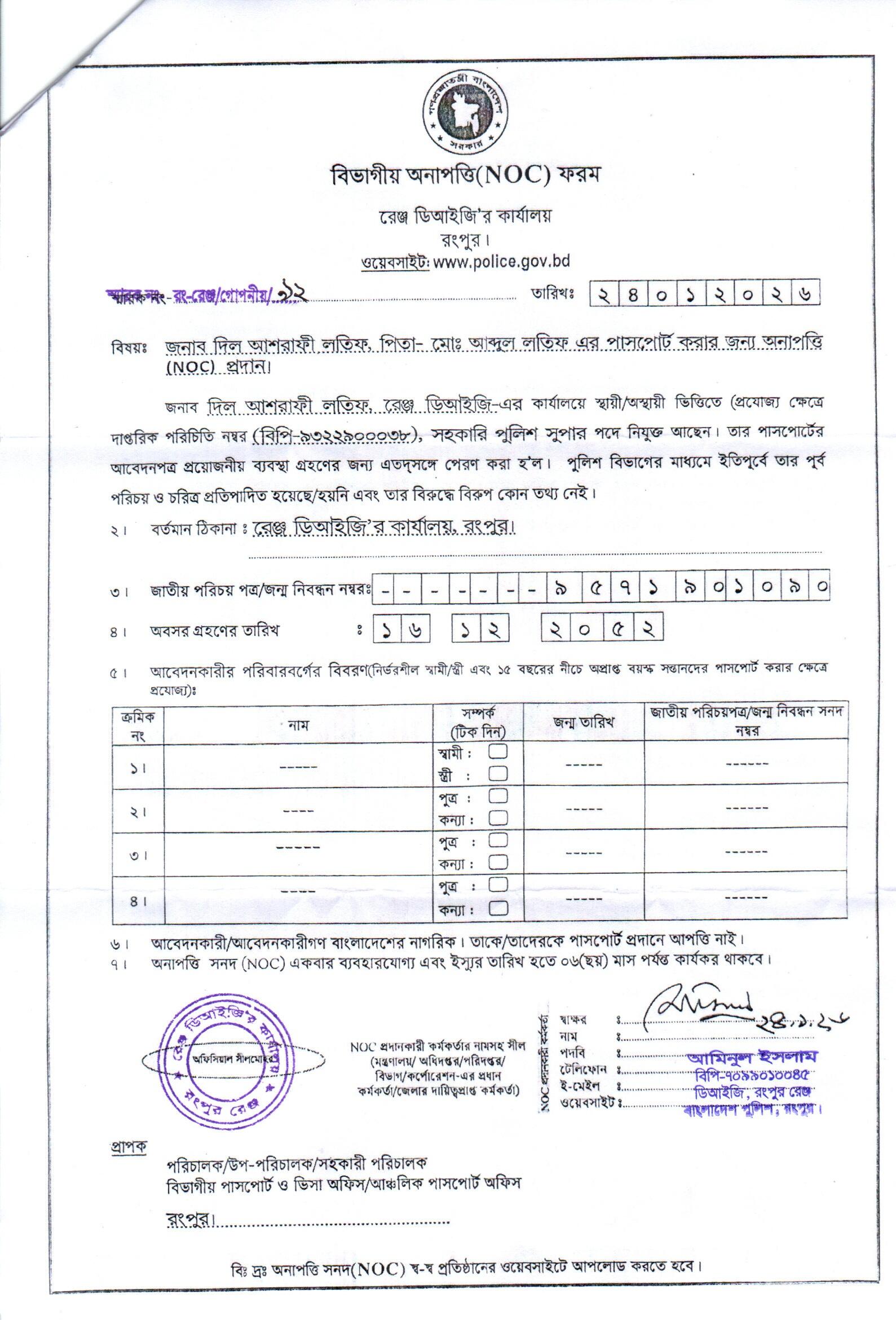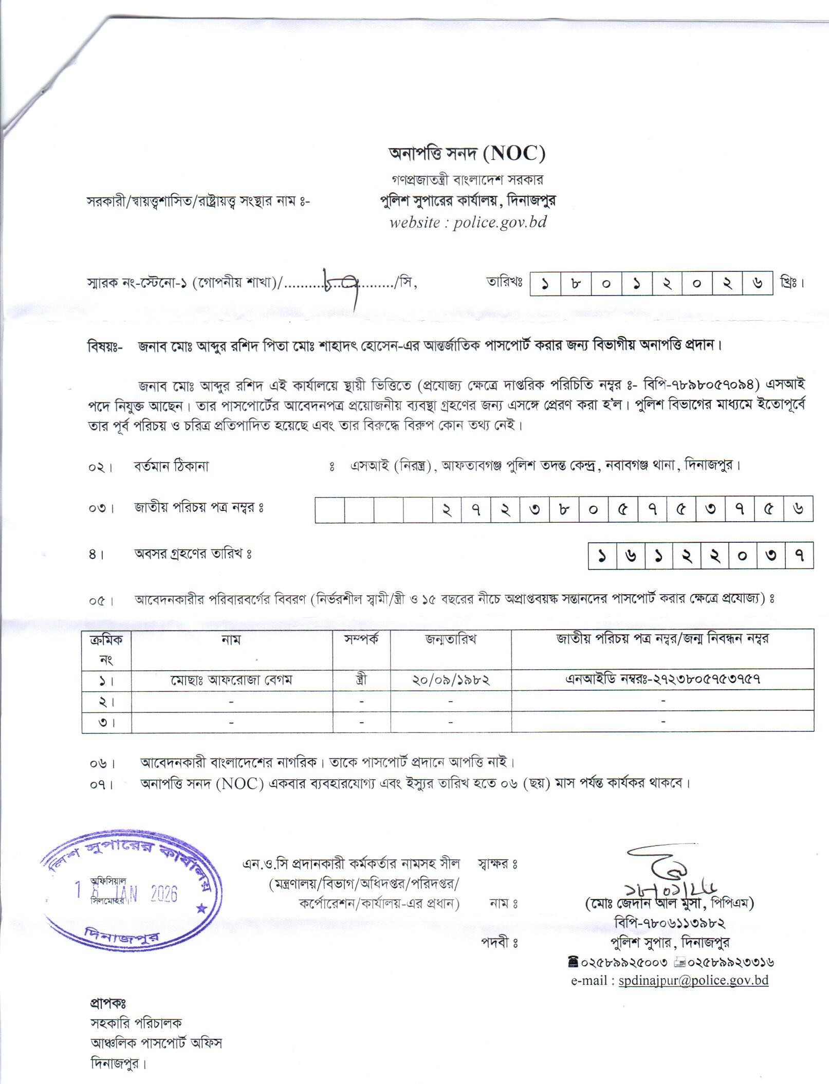 | 18 | মোঃ আব্দুর রশিদ, SI | Dinajpur | 26-01-2026 | View | Download |