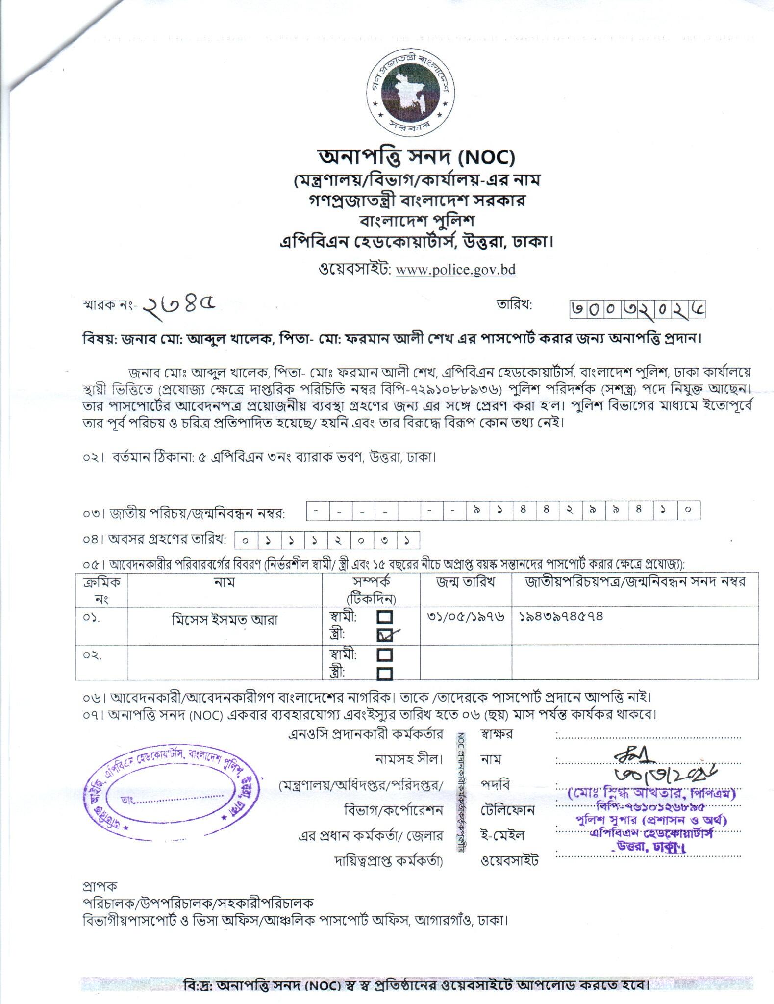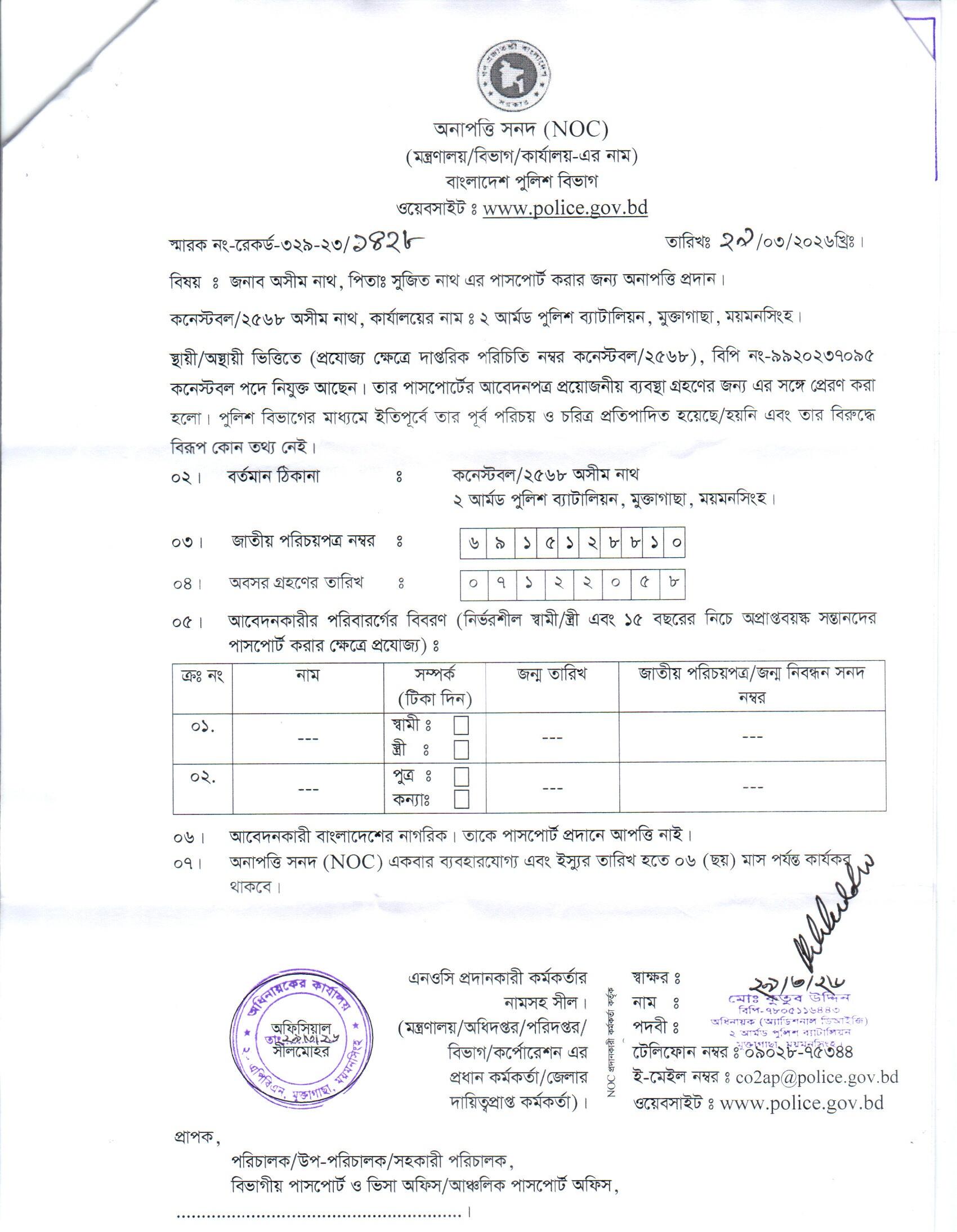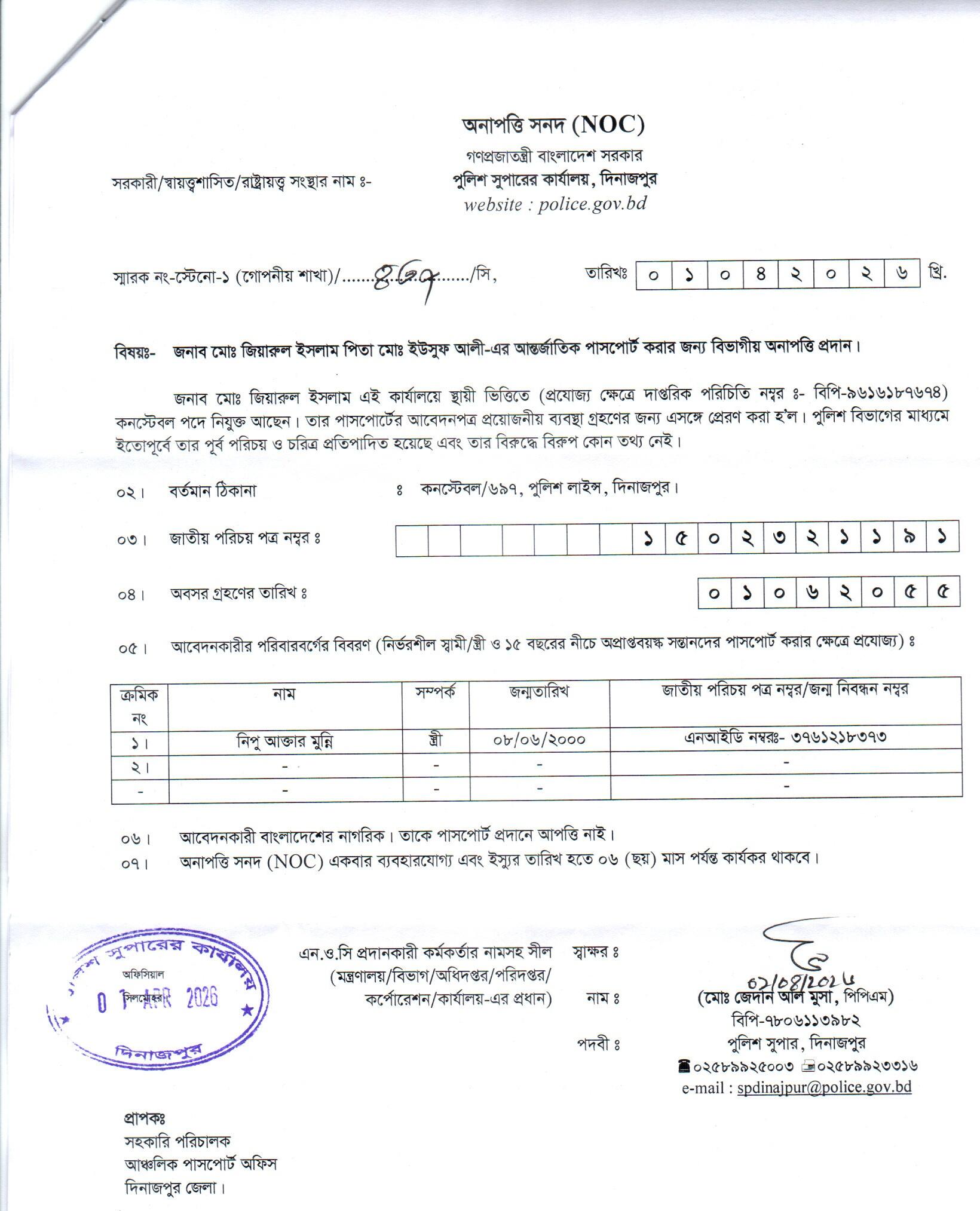 | 3 | মোঃ জিয়ারুল ইসলাম , CONS | Dinajpur | 20-05-2026 | View | Download |