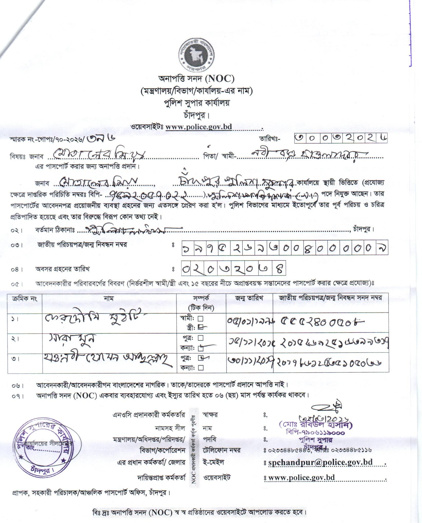 | 10 | বিশ্বজিৎ নাথ, ASi | Chandpur | 20-05-2026 | View | Download |