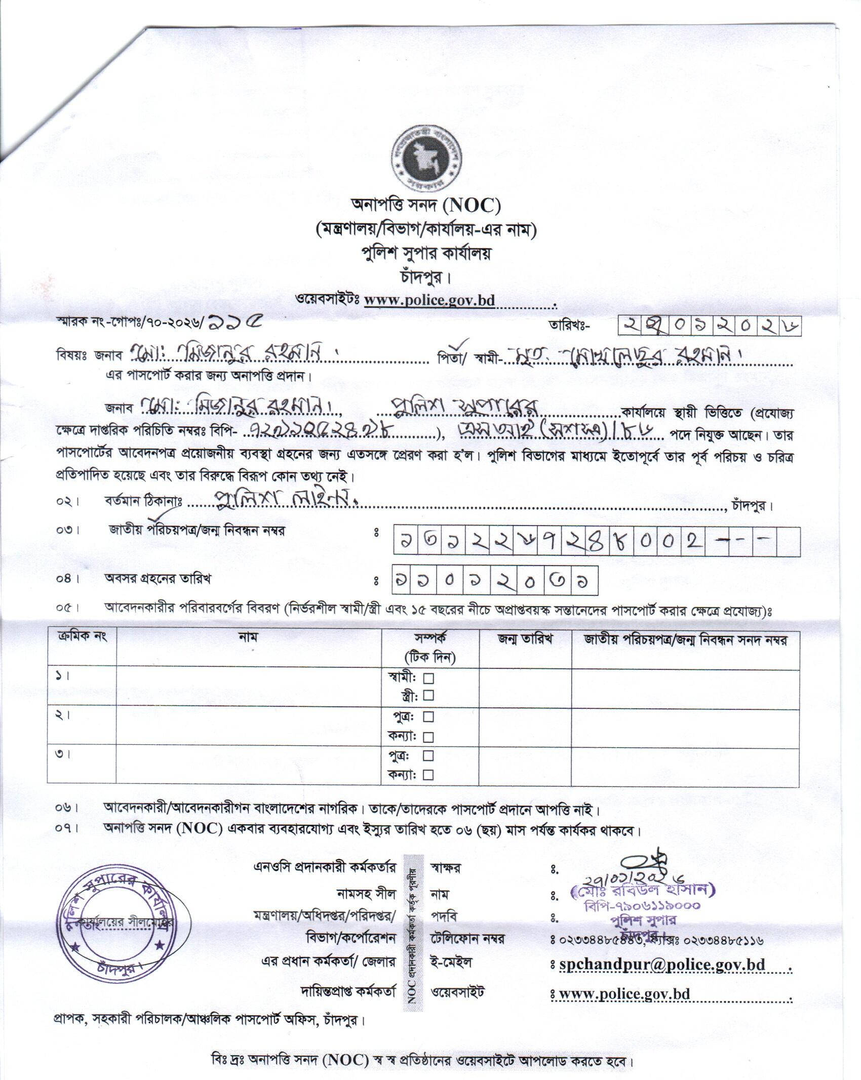 | 3 | মোঃ মিজানুর রহমান, SI | Chandpur | 02-02-2026 | View | Download |