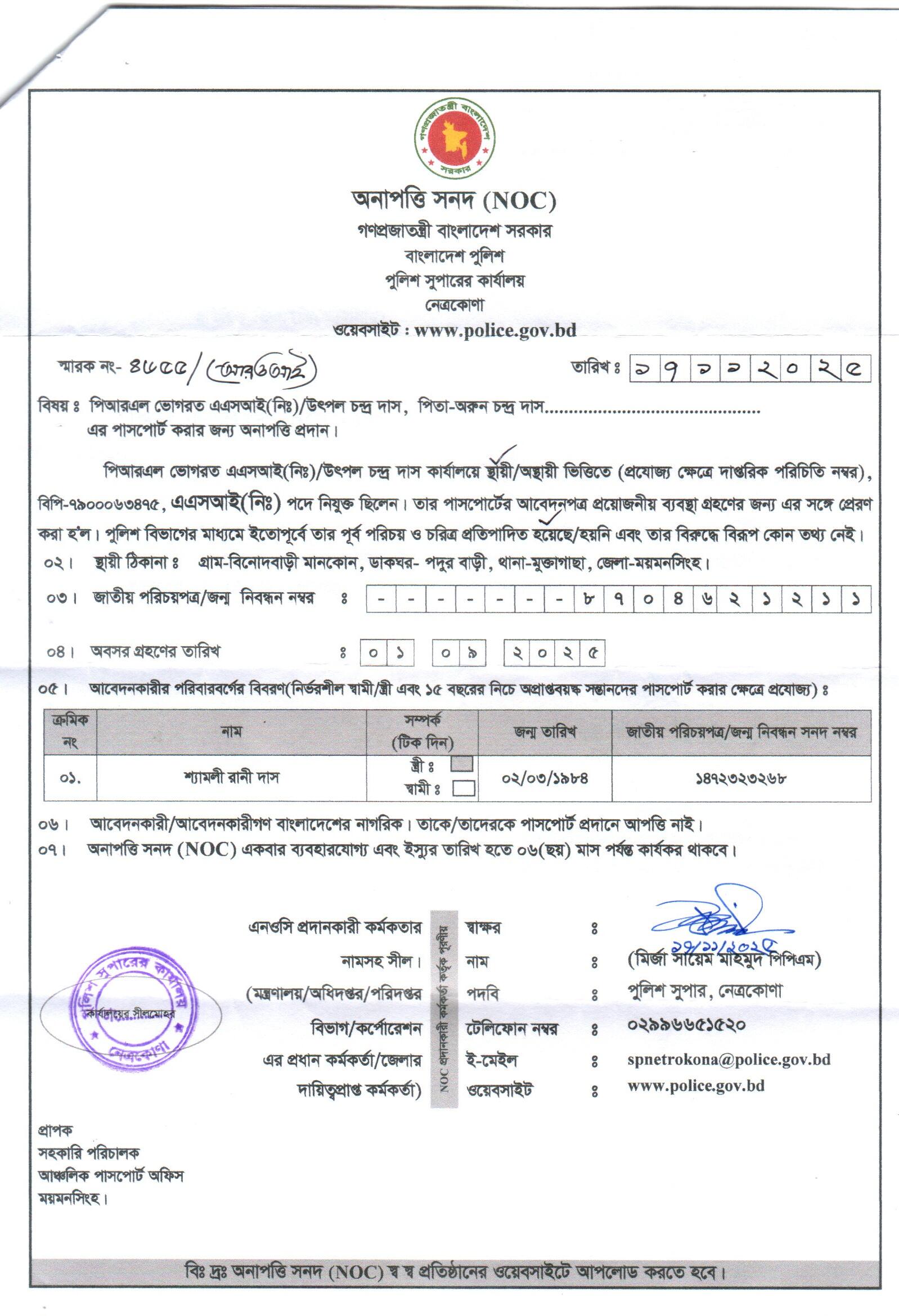 | 4 | উৎপল চন্দ্র দাস, ASI | Netrokona | 20-11-2025 | View | Download |
