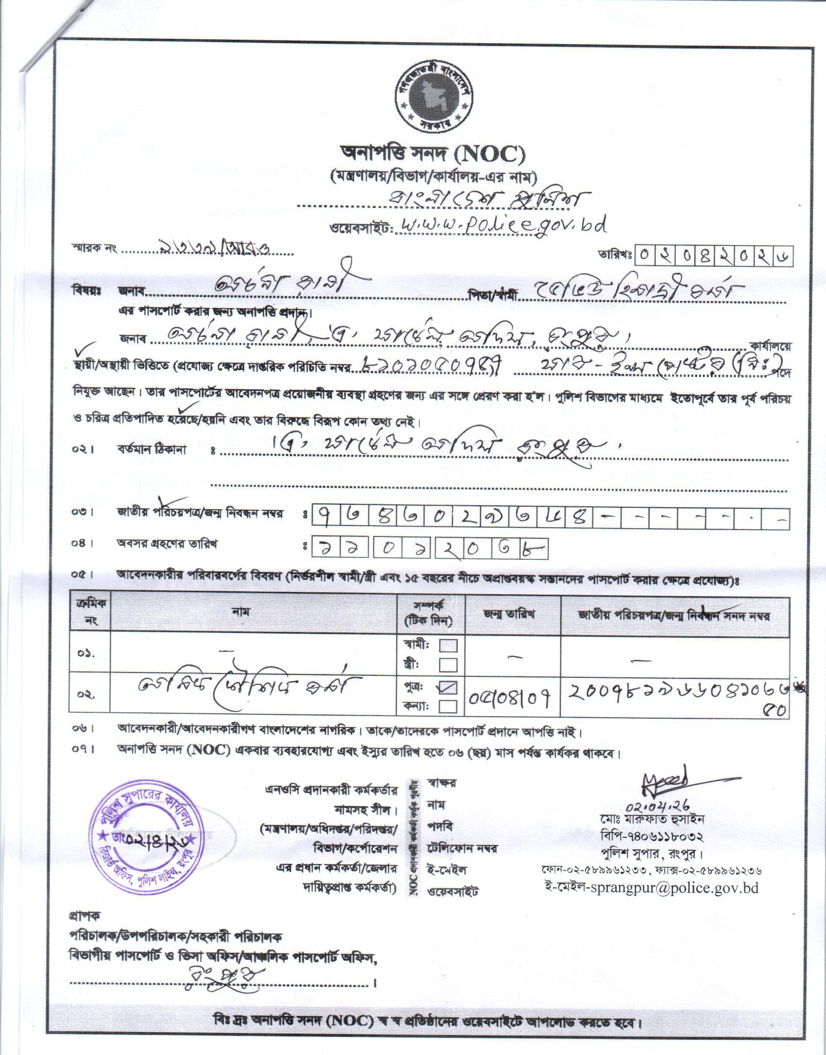 | 7 | অর্চনা রানী, SI | Rangpur | 20-05-2026 | View | Download |