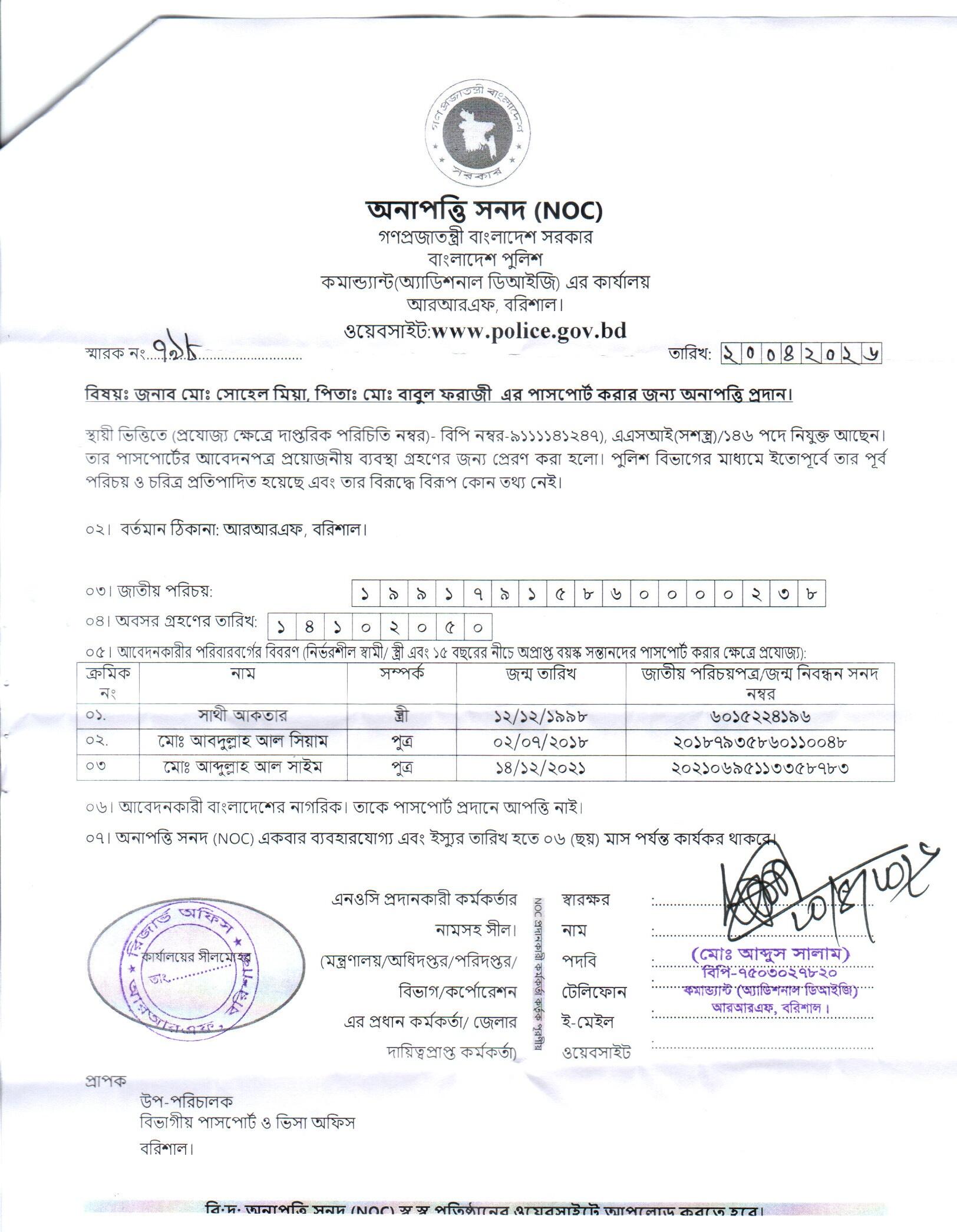 | 33 | মোঃ সোহেল মিয়া, ASI | RRF, Barishal | 20-04-2026 | View | Download |