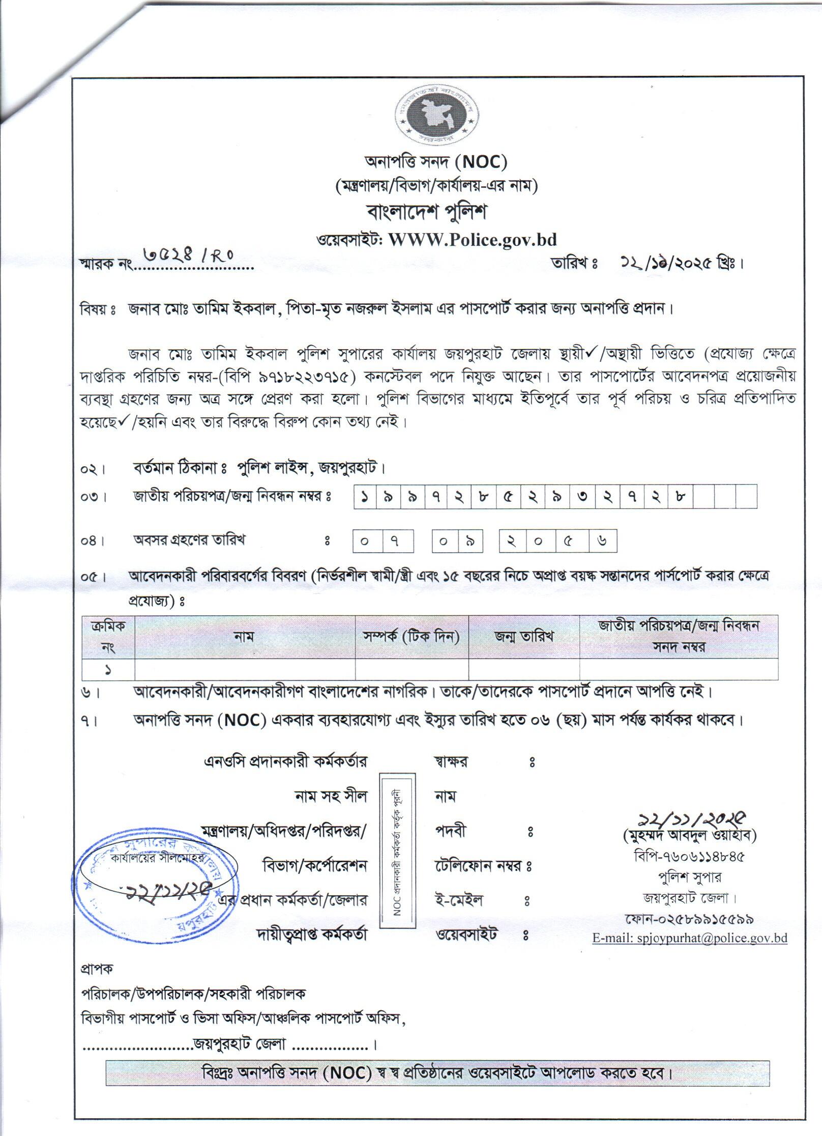 | 6 | মোঃ তামিম ইকবাল, Cons | Joypurhat | 20-11-2025 | View | Download |