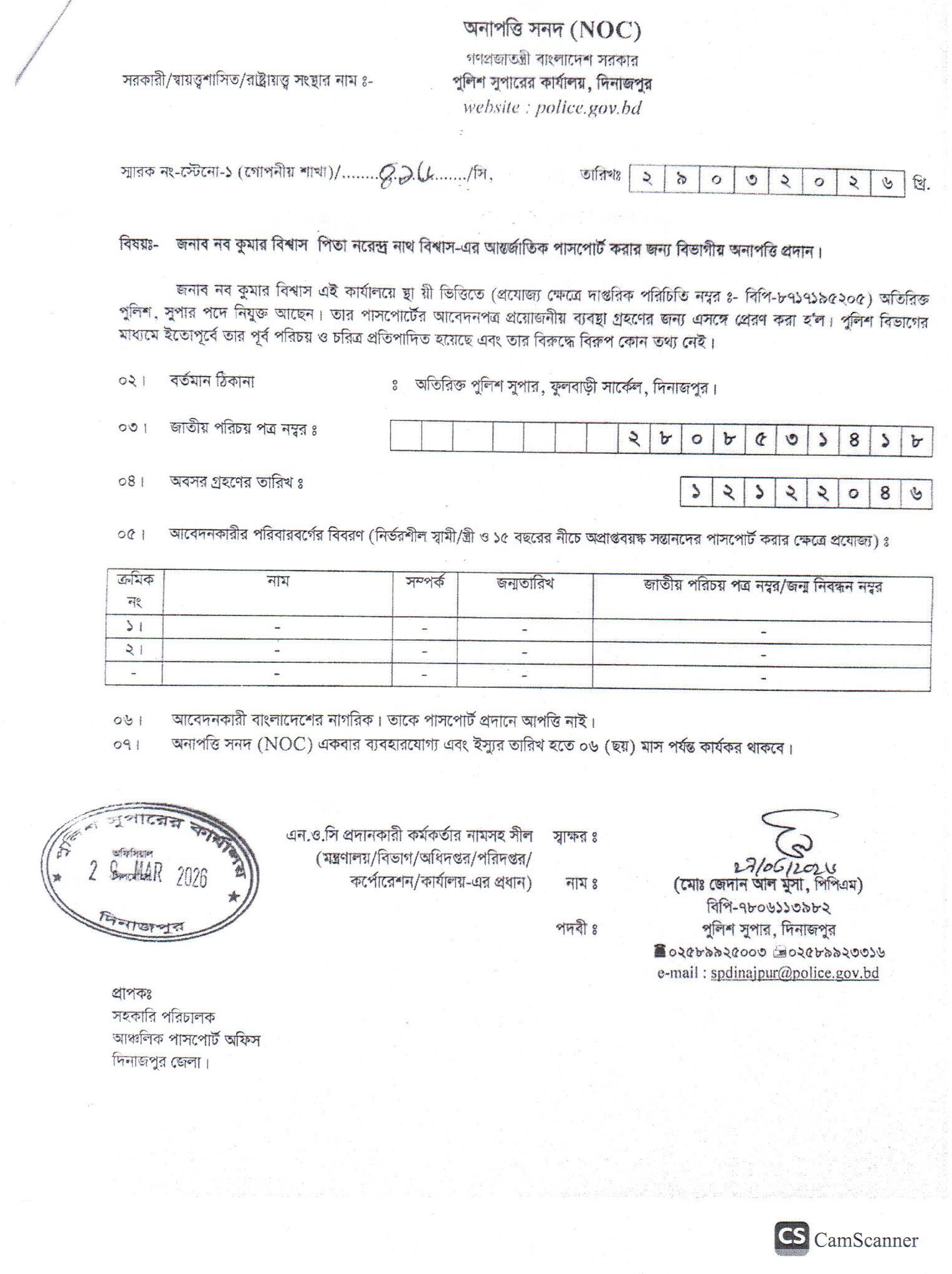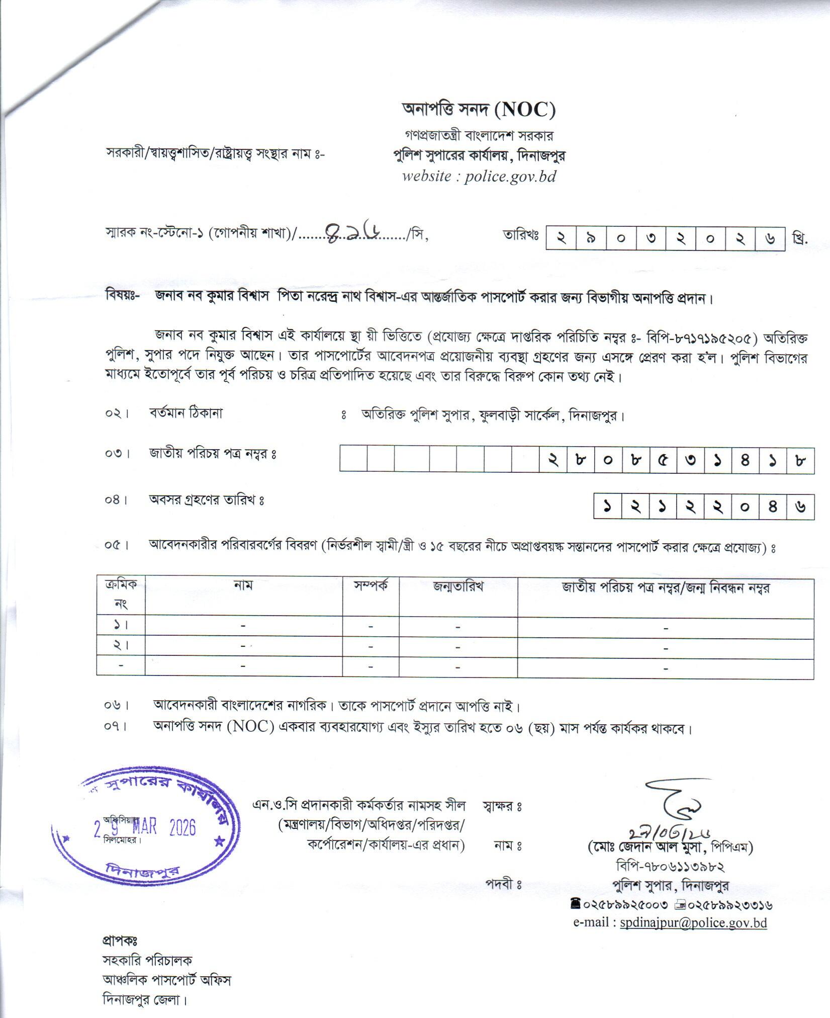 | 22 | নব কুমার বিশ্বাস, Addl SP | Dinajpur | 30-03-2026 | View | Download |