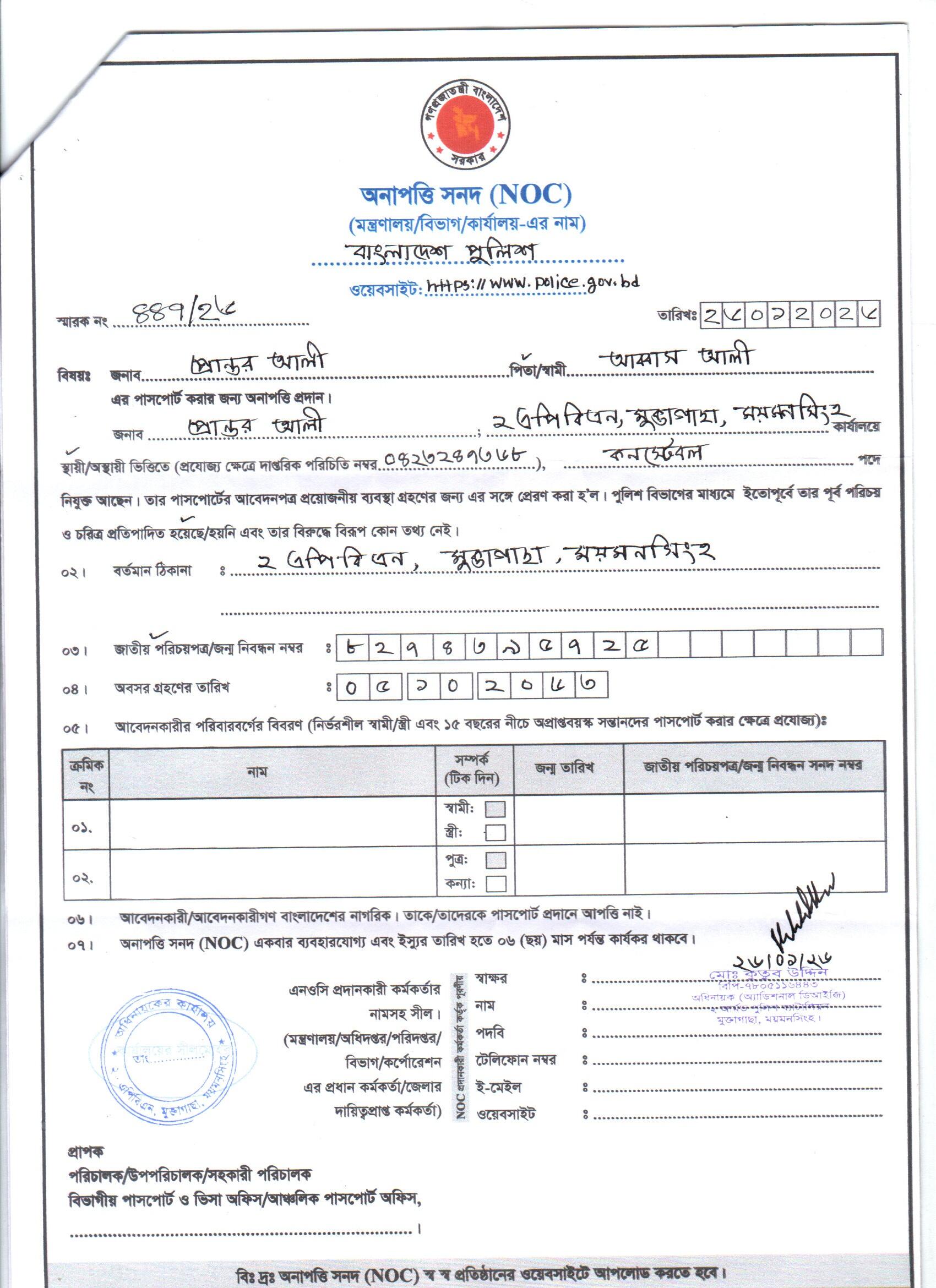| 42 | মোঃ মকবুল হোসেন, SI | Kishoreganj | 14-01-2026 | View | Download |