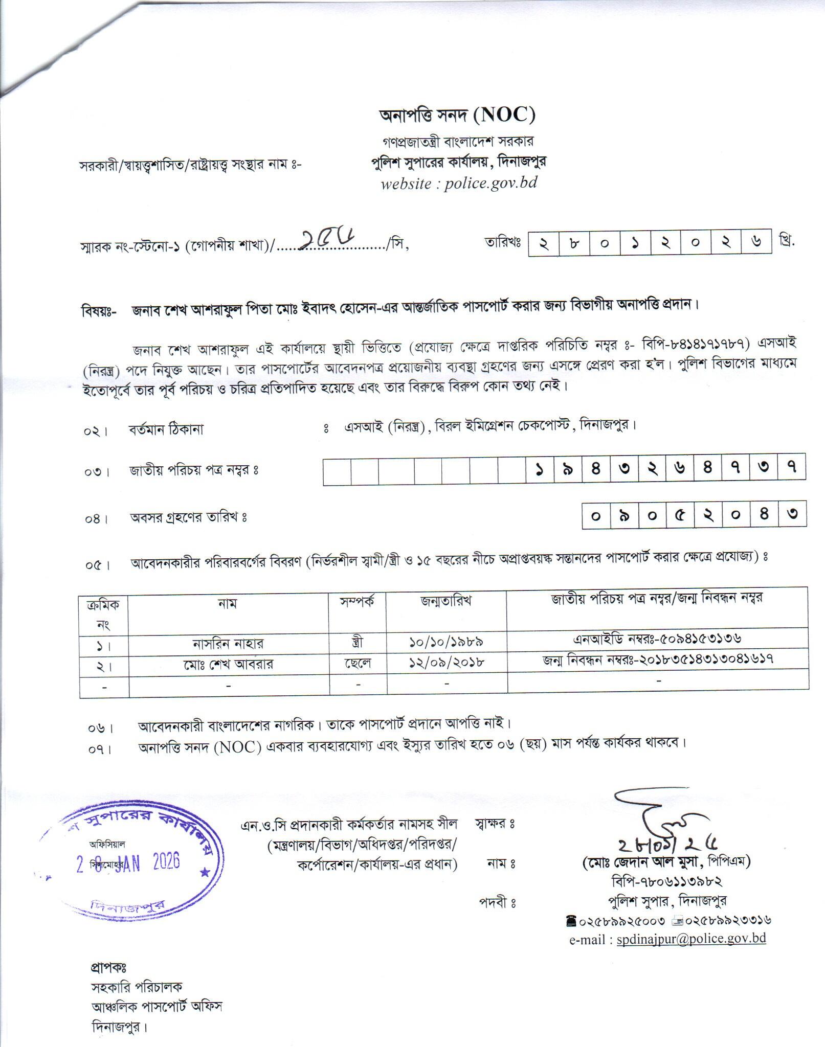 | 6 | শেখ আশরাফুল , SI | Dinajpur | 01-02-2026 | View | Download |