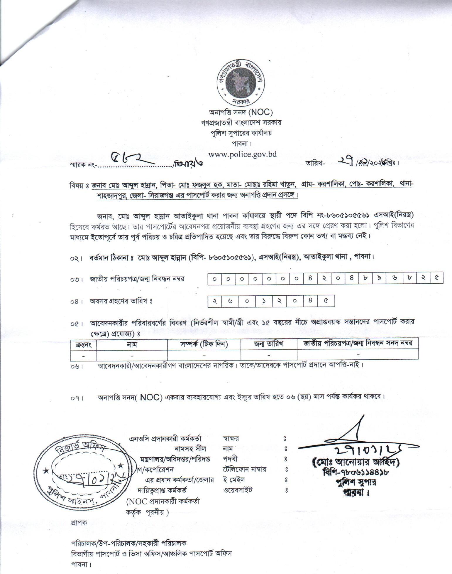 | 12 | মোঃ আব্দুল হান্নান, SI | Pabna | 01-02-2026 | View | Download |
