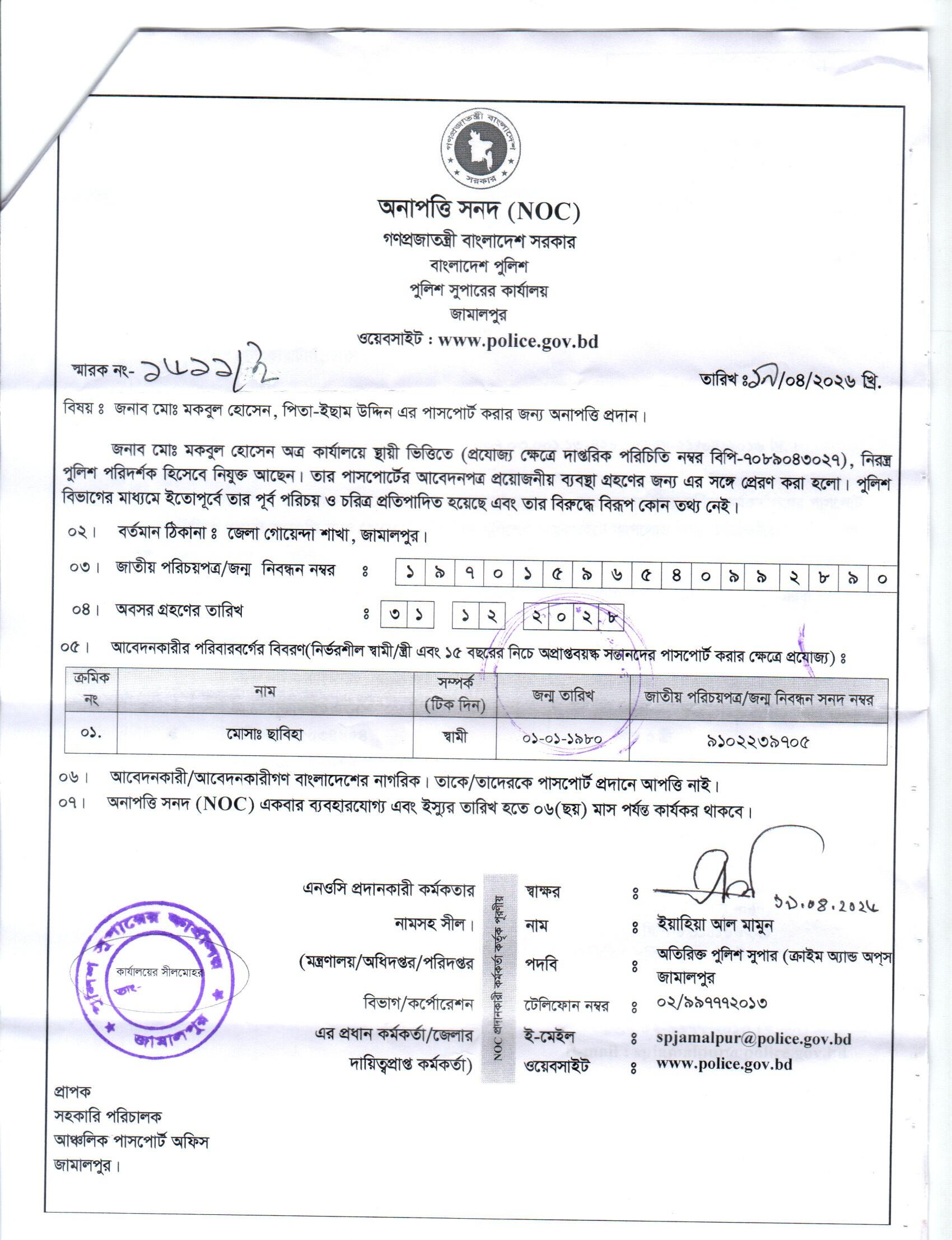 | 22 | মোঃ মকবুল হোসেন, Insp | Jamalpur. | 23-04-2026 | View | Download |
