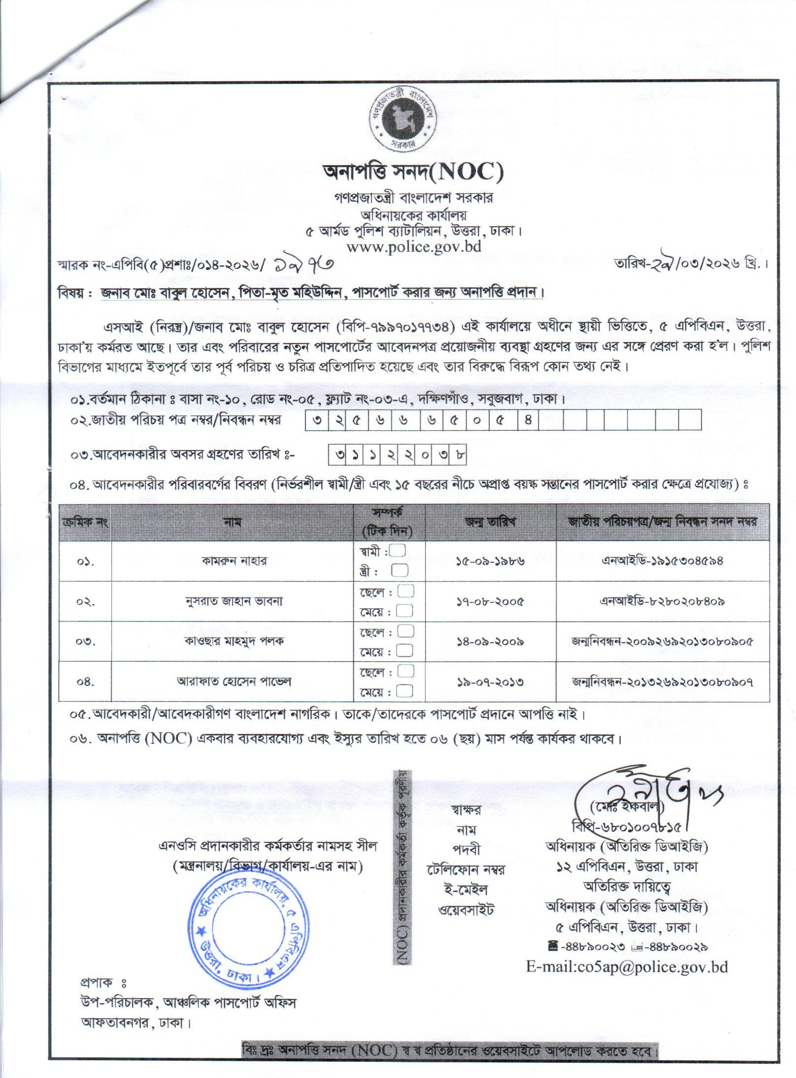 | 5 | মোঃ ফিরোজ কামাল, ASI | Rangpur | 20-05-2026 | View | Download |