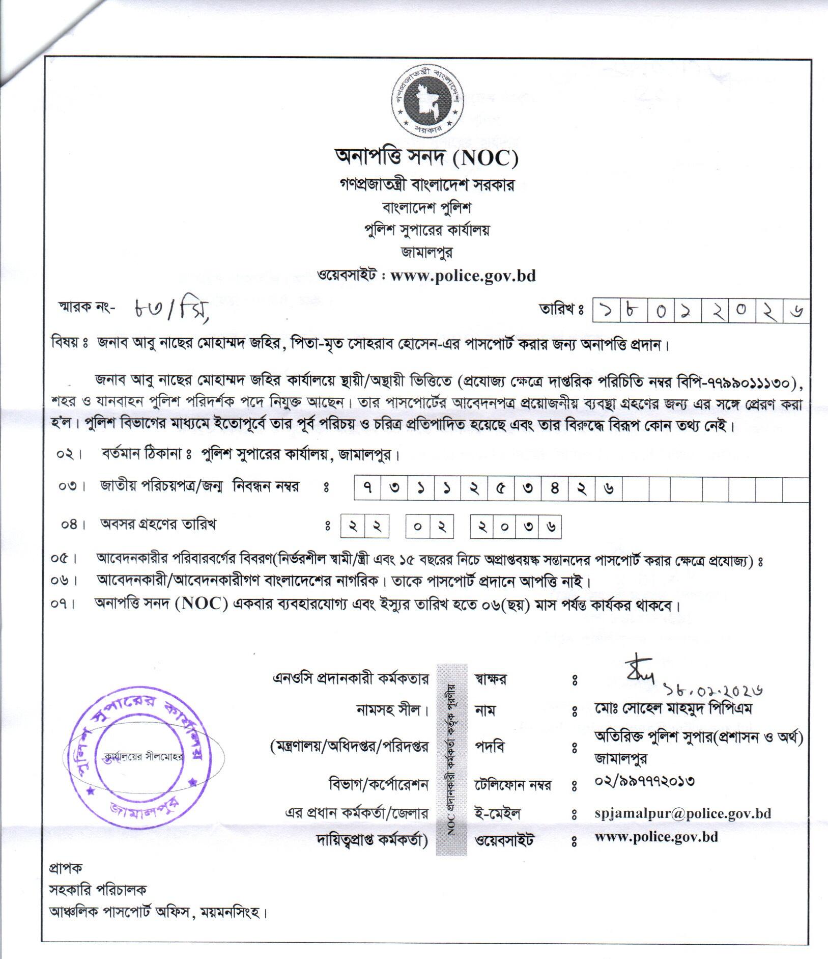 | 11 | রাকিবুল ইসলাম, Cons | Jamalpur. | 01-02-2026 | View | Download |