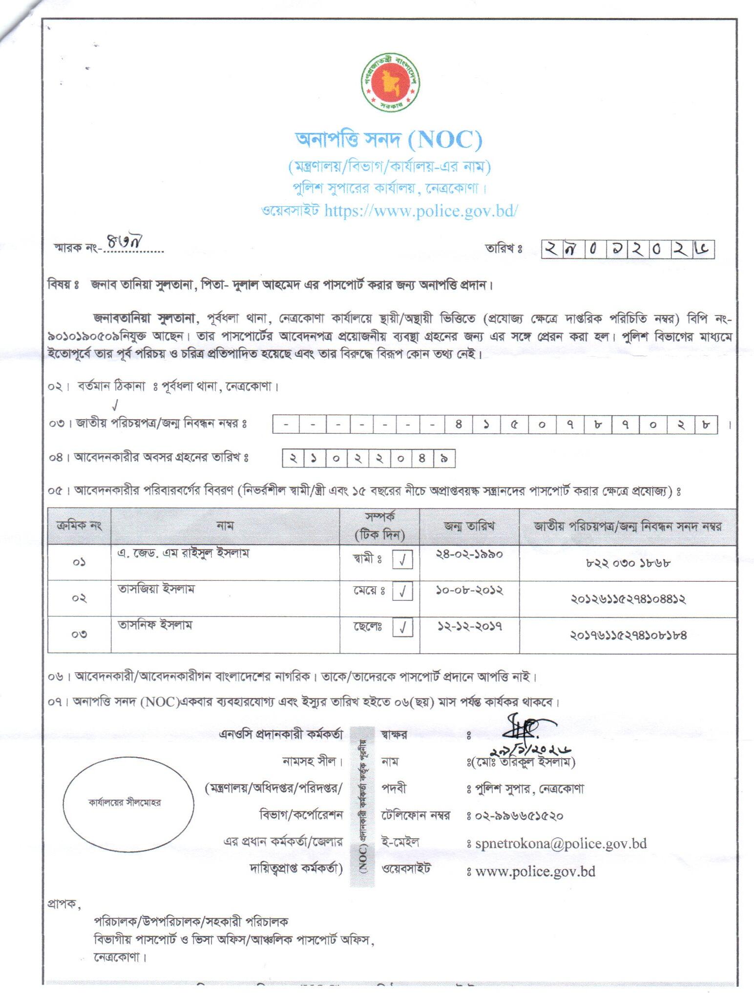 | 9 | তানিয়া সুলতানা, Cons | Netrokona | 01-02-2026 | View | Download |
