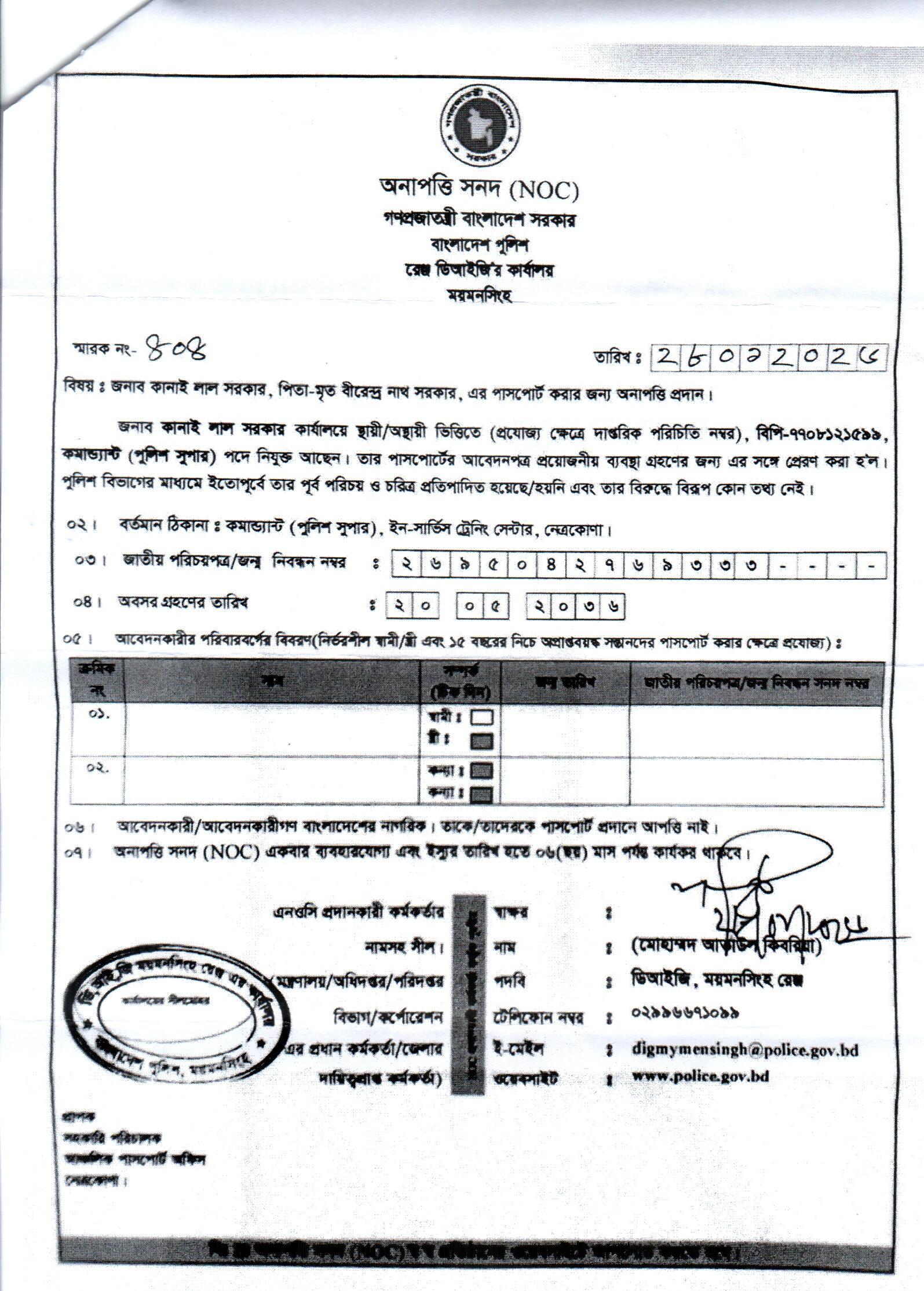| 8 | কানাই লাল সরকার, SP | Mymensingh Range | 01-02-2026 | View | Download |