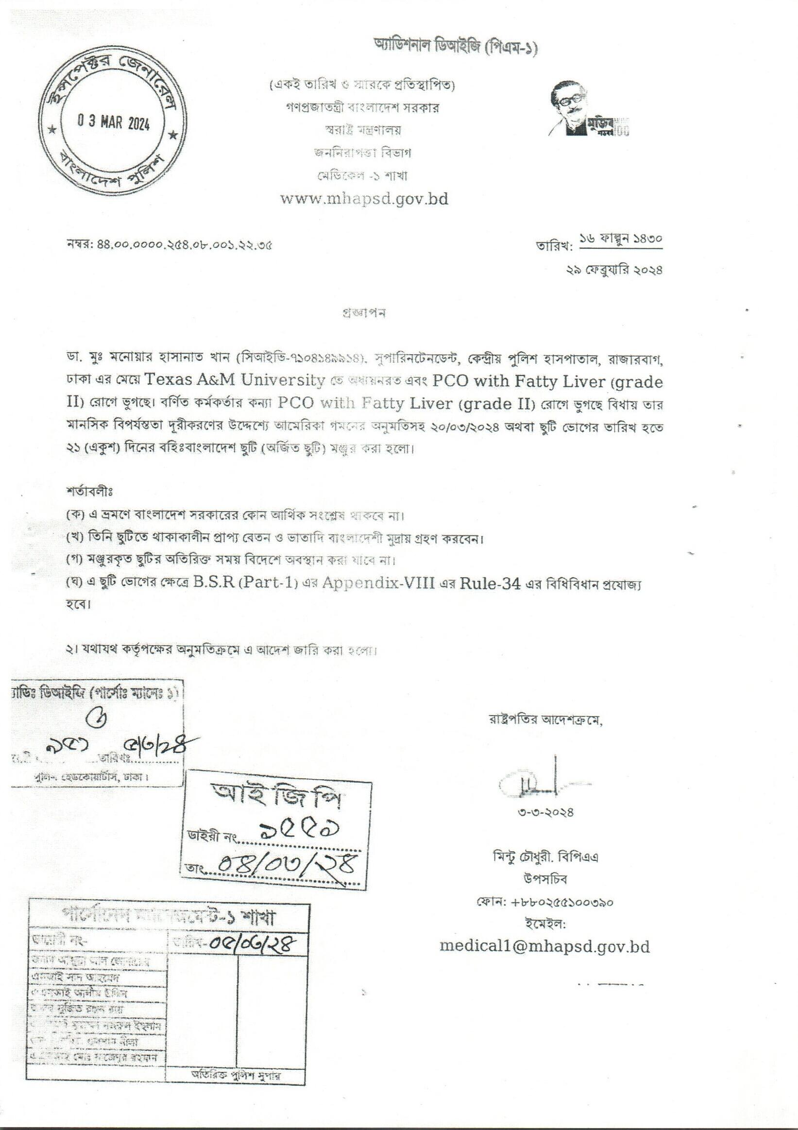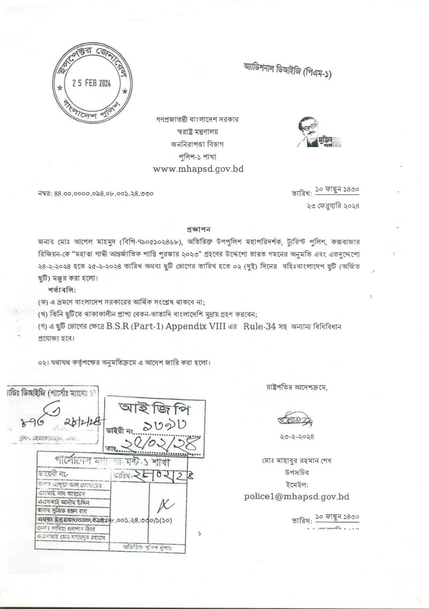 বহিঃ বাংলাদেশ ছুটি, প্রজ্ঞাপন নং- ৩৩০, তারিখঃ ২৩/০২/২০২৪ খ্রিঃ।