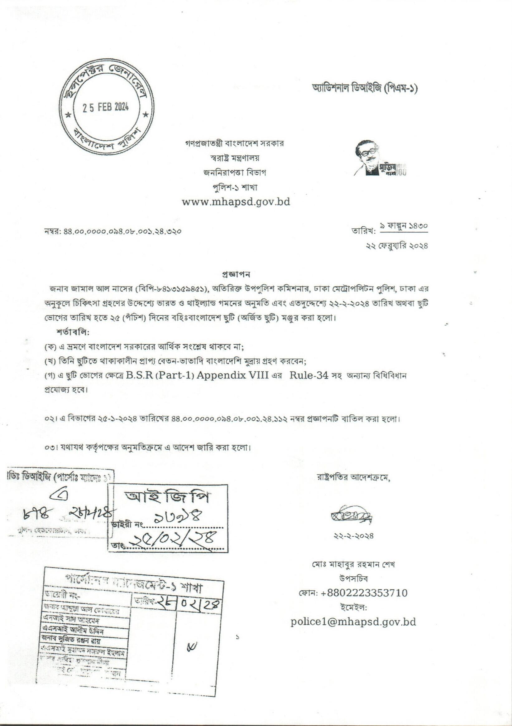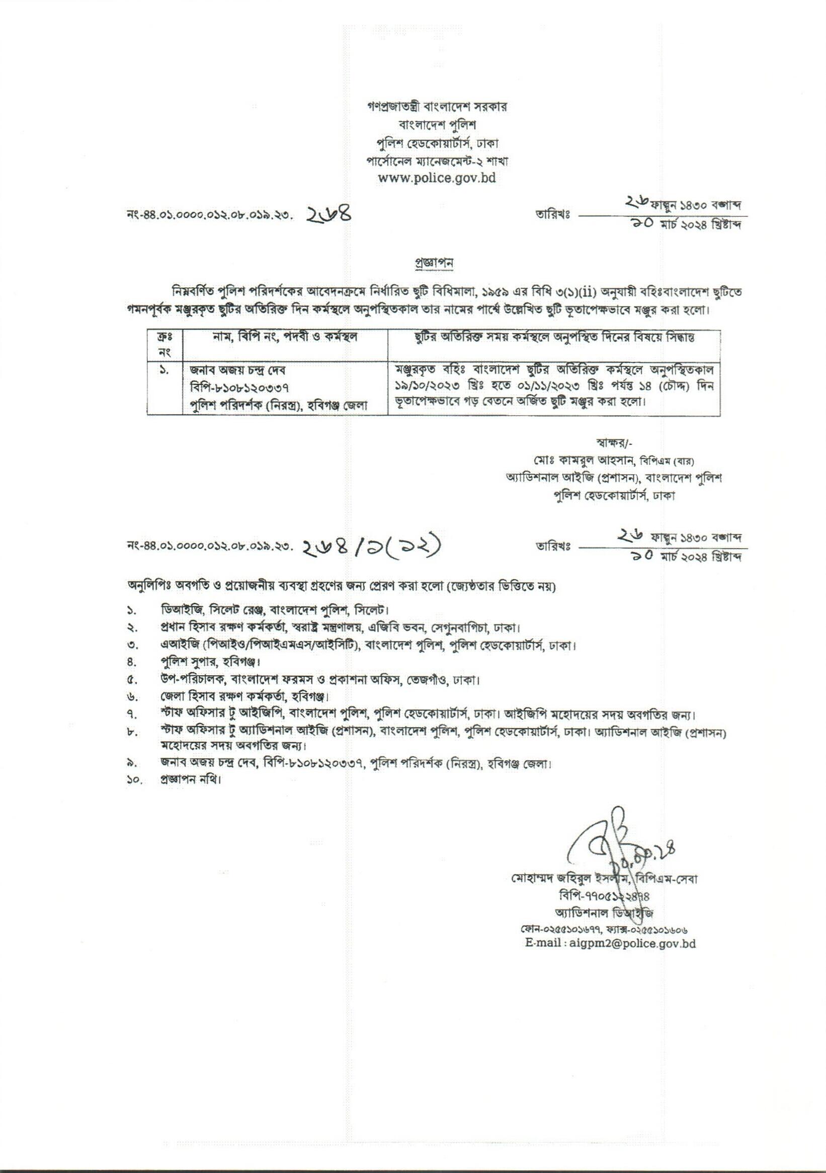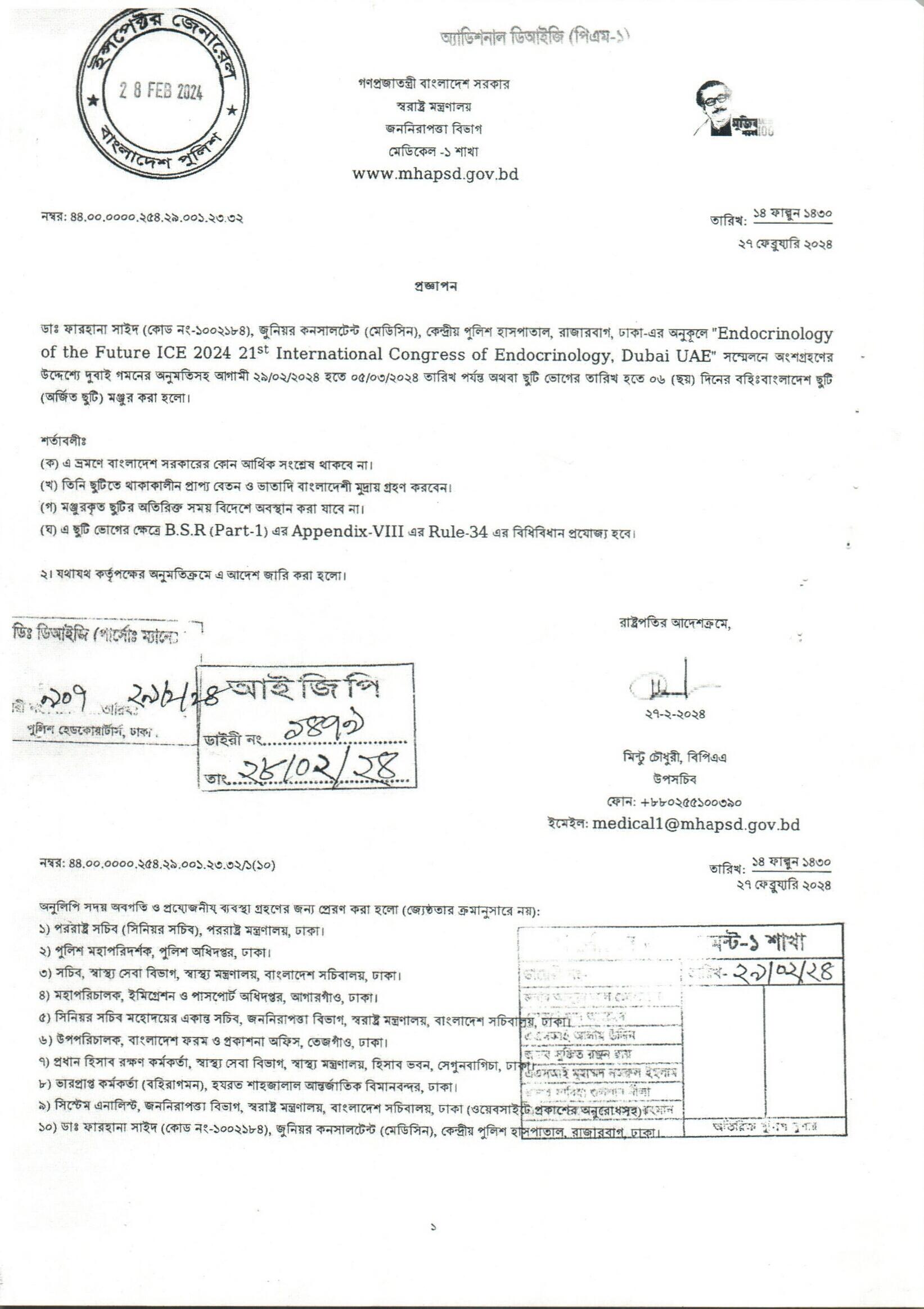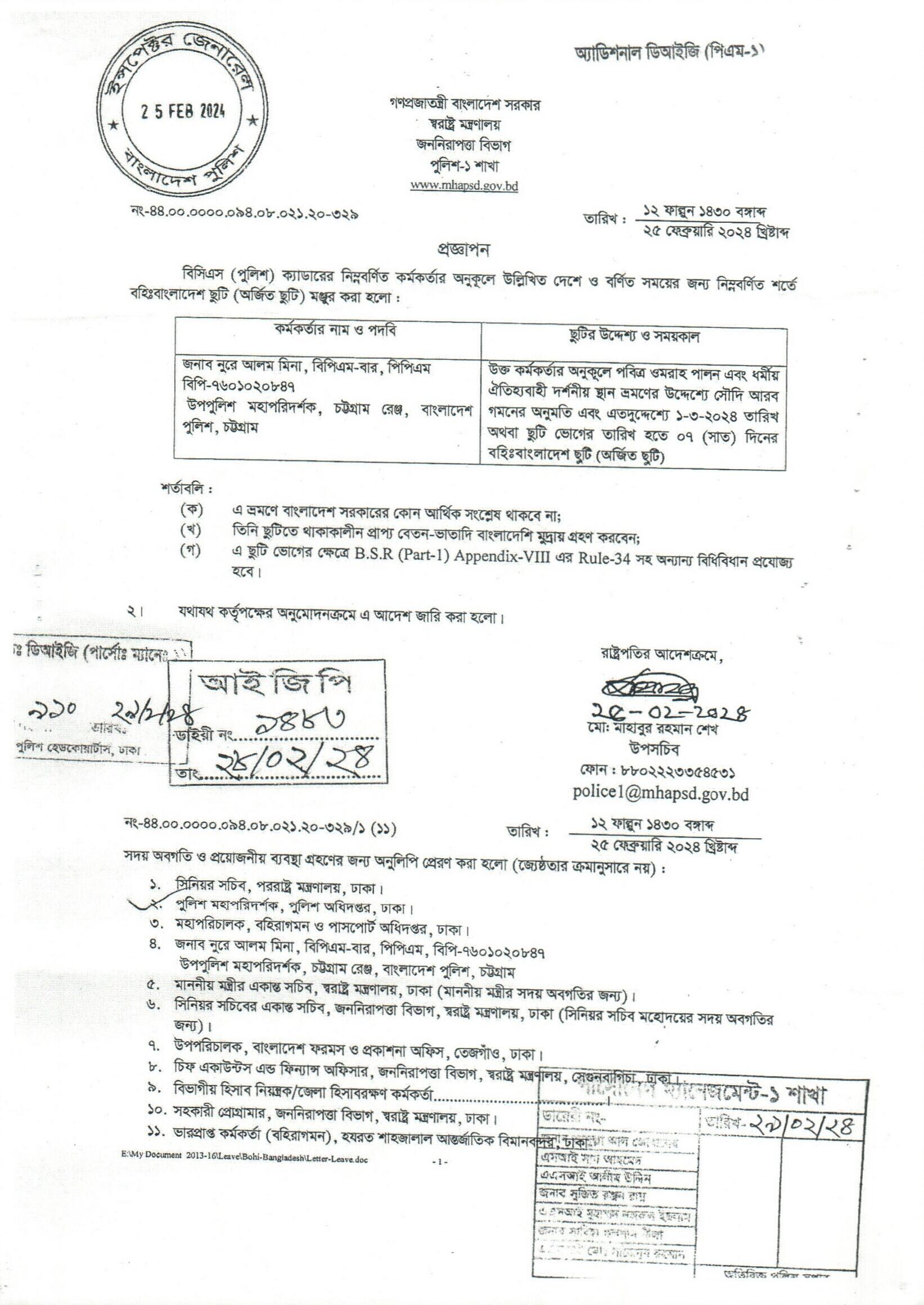 বহিঃ বাংলাদেশ ছুটি, প্রজ্ঞাপন নং- ২৪৯, তারিখঃ ২৫/০২/২০২৪ খ্রিঃ।
