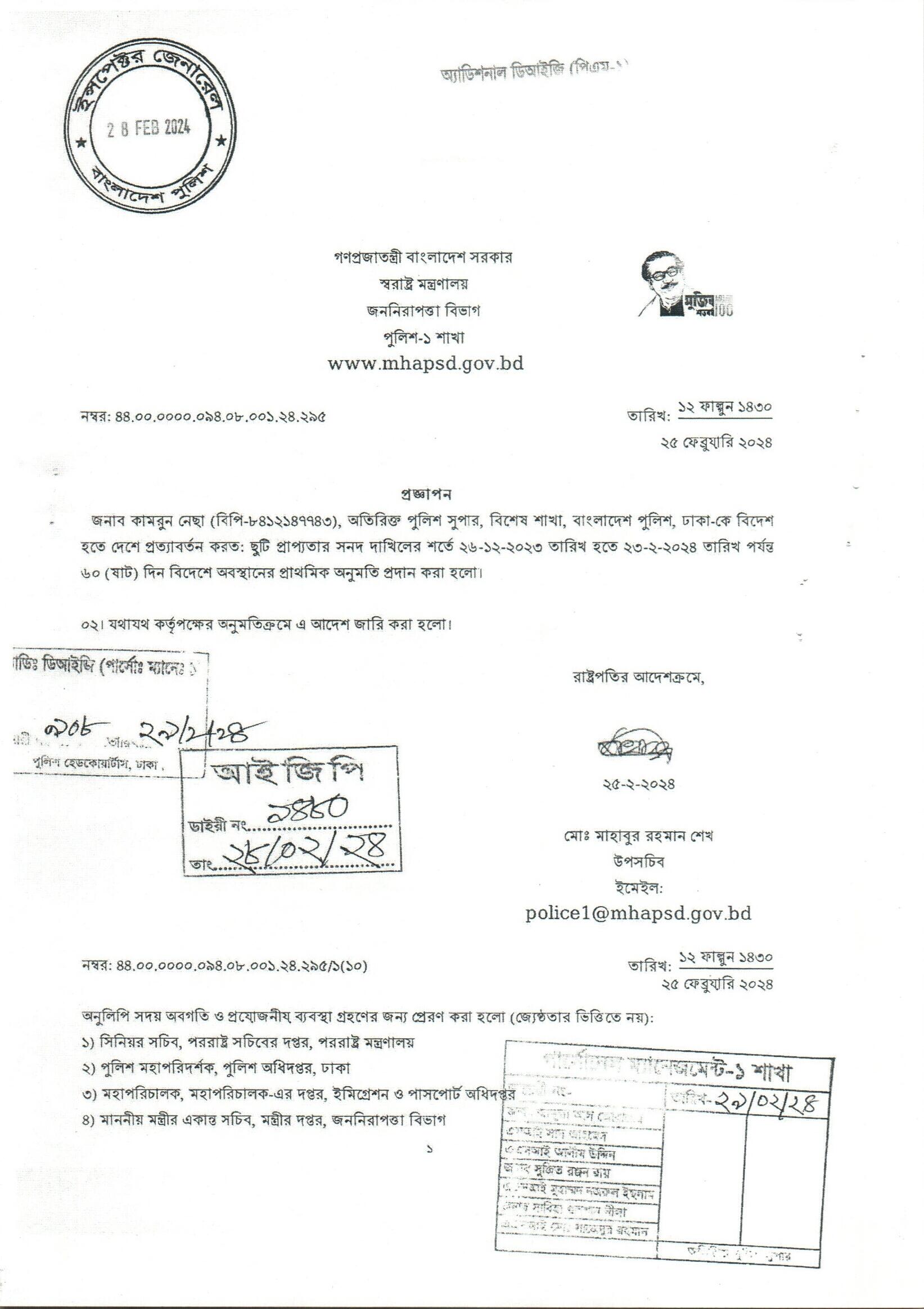 বহিঃ বাংলাদেশ ছুটি, প্রজ্ঞাপন নং- ৩২০, তারিখঃ ২২/০২/২০২৪ খ্রিঃ।