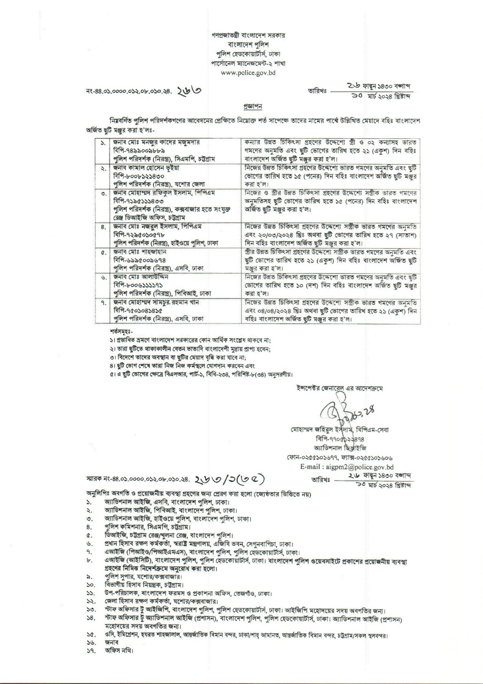 বহিঃ বাংলাদেশ ছুটি, প্রজ্ঞাপন নং- ৩২, তারিখঃ ২৭/০২/২০২৪ খ্রিঃ।