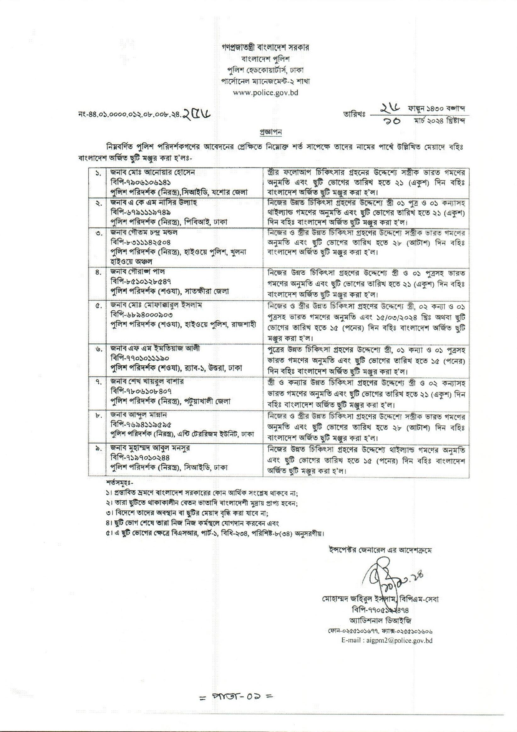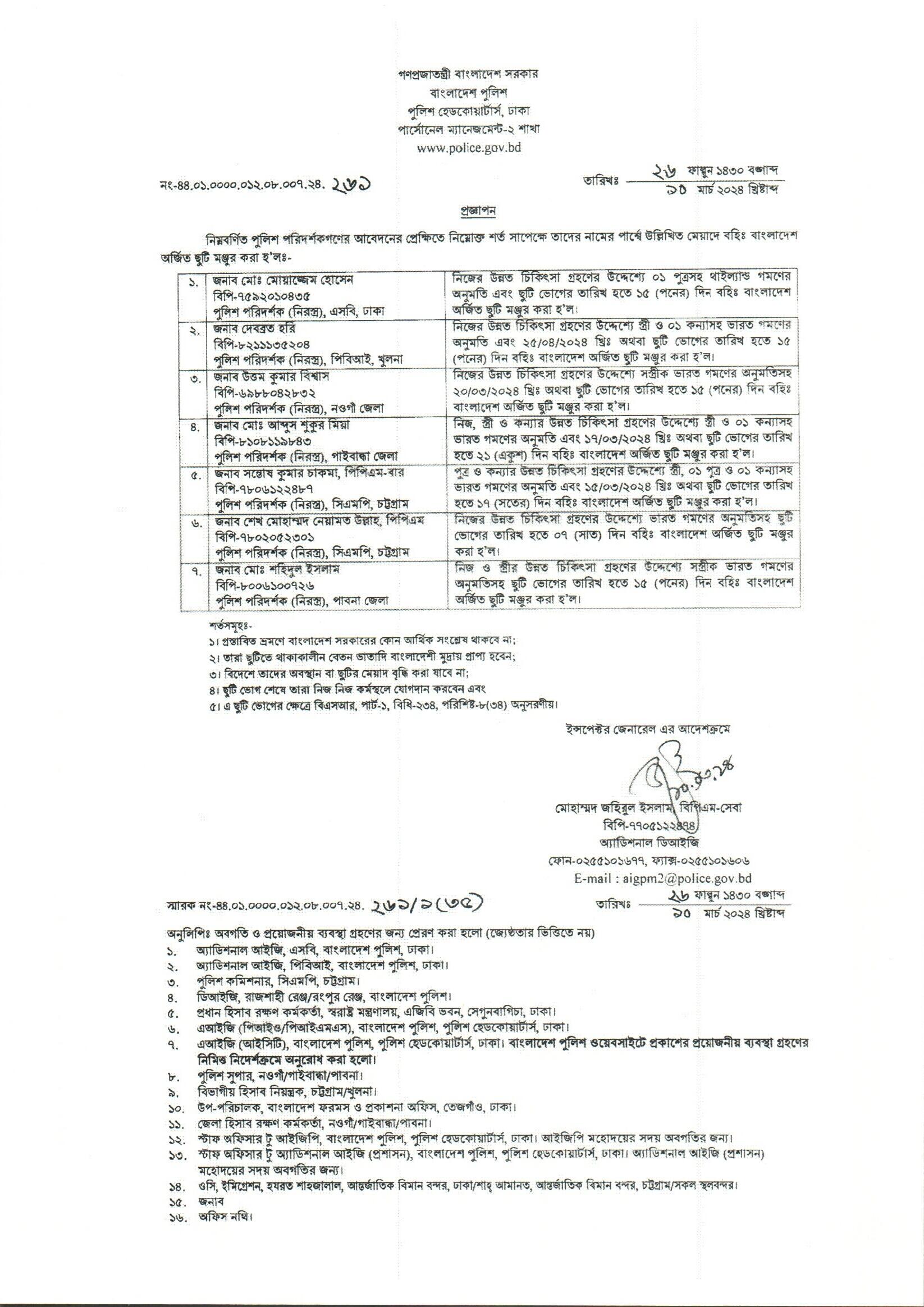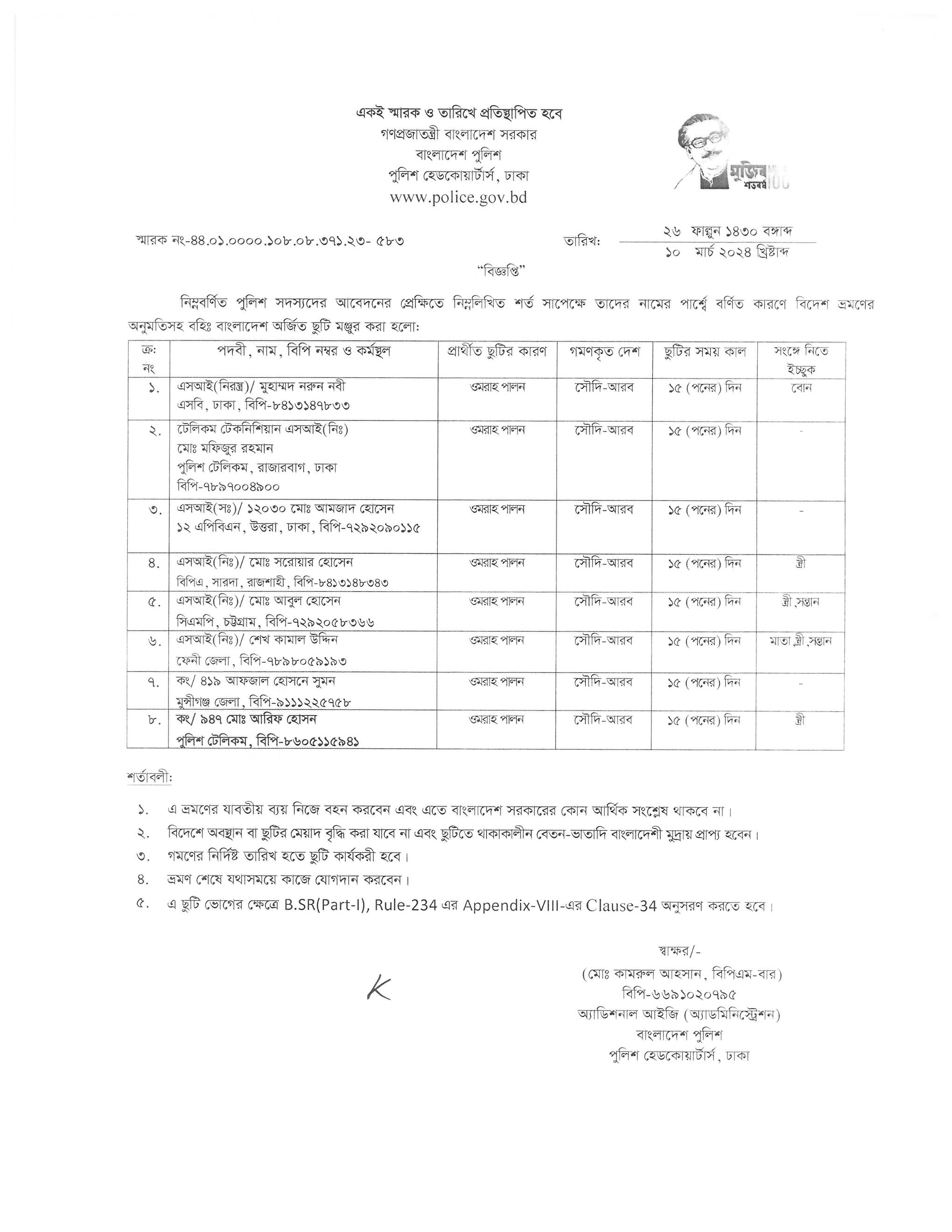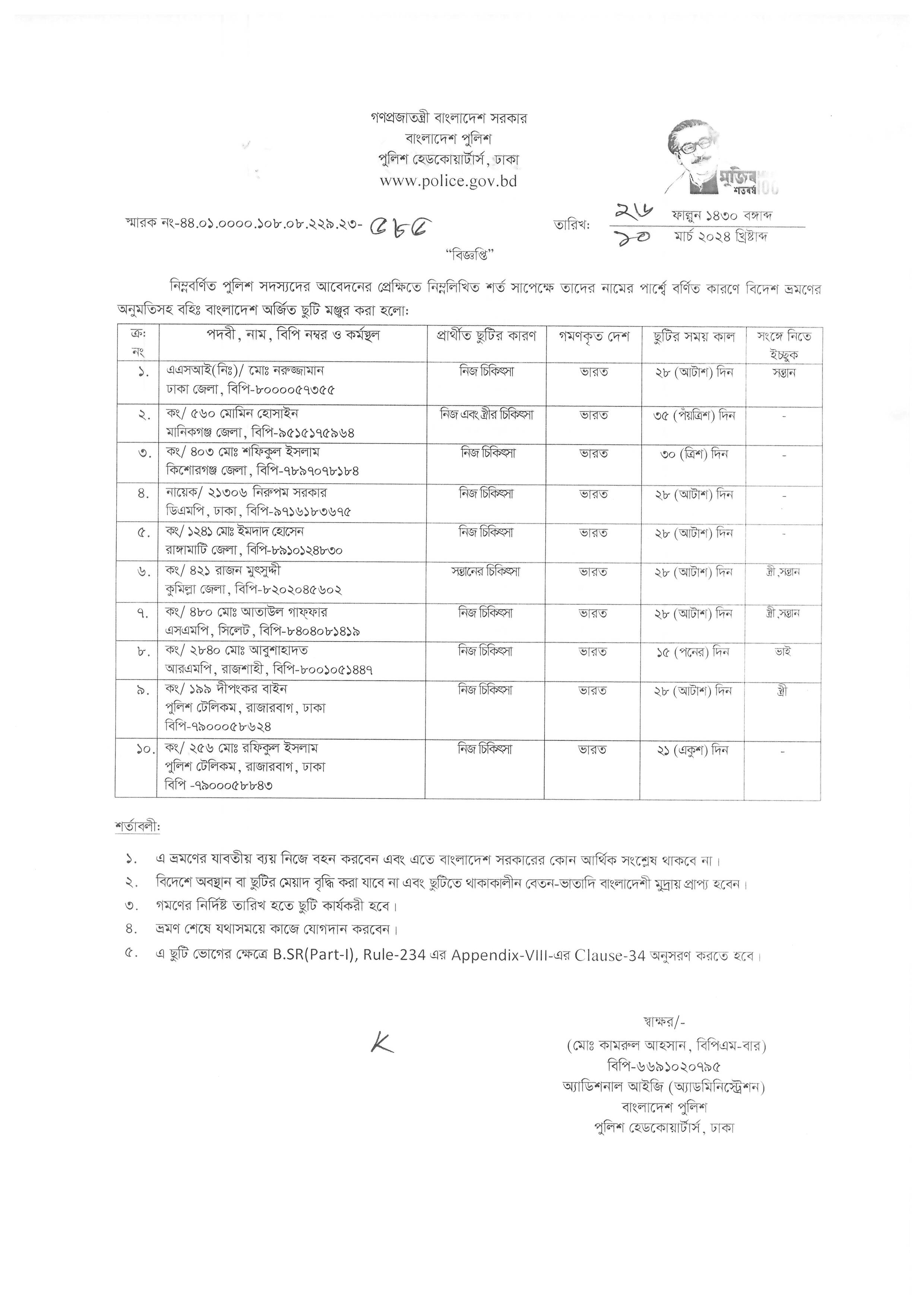 বহিঃ বাংলাদেশ ছুটি, বিজ্ঞপ্তি নং-৫৮২ , তারিখঃ ১০/০৩/২০২৪ খ্রিঃ।