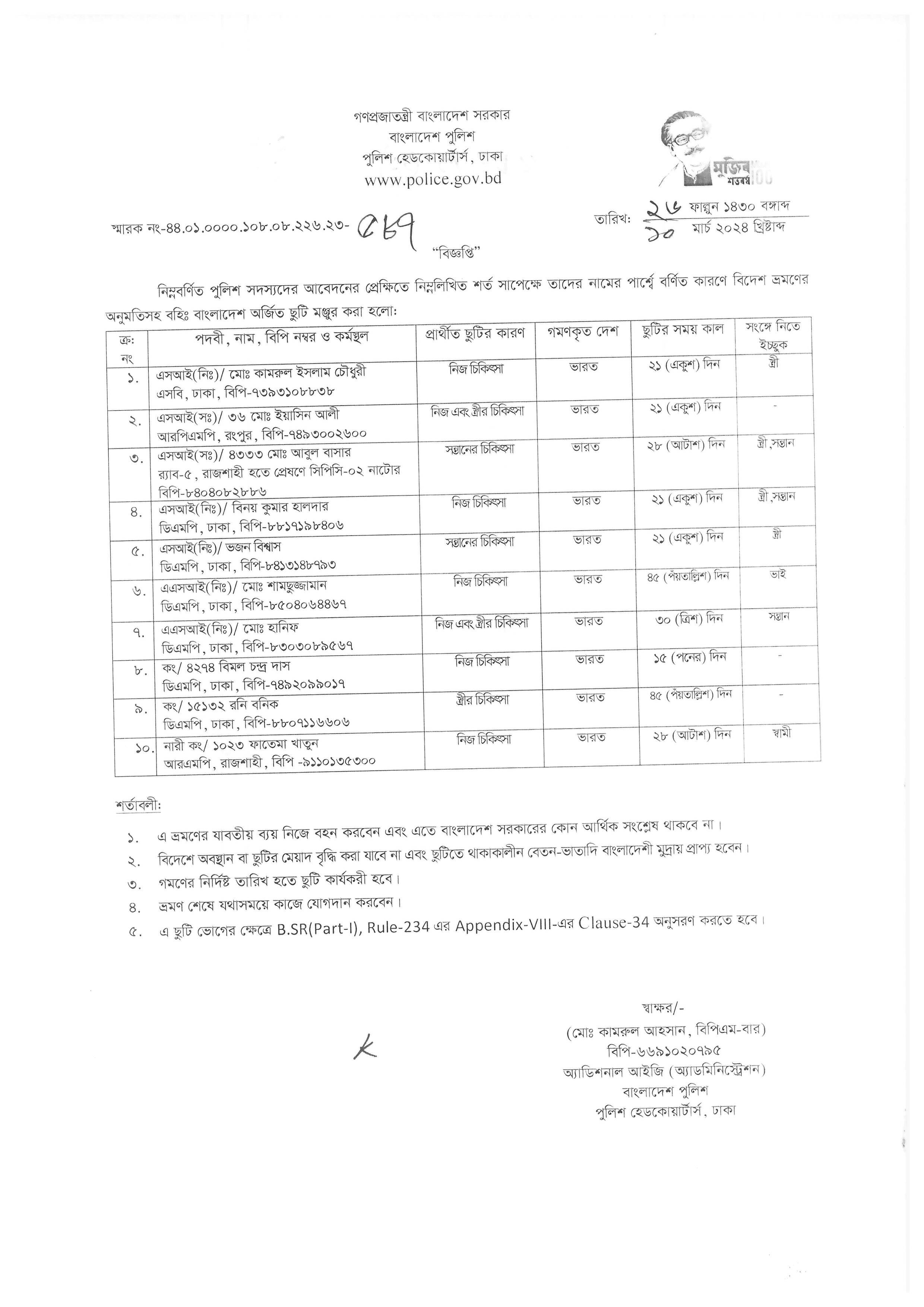 বহিঃ বাংলাদেশ ছুটি, বিজ্ঞপ্তি নং-৫৬৯ , তারিখঃ ০৪/০৩/২০২৪ খ্রিঃ।